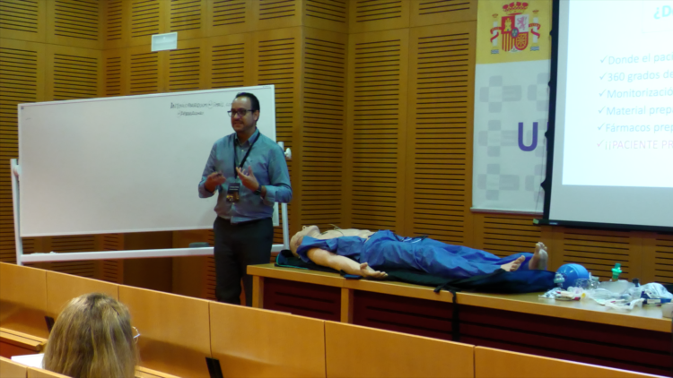 El segundo taller ha estado impartido por Antonio Pérez, profesional sanitario del SAMUR en Madrid, quien ha hecho una exposición práctica sobre el 'Manejo Hemodinámico de la Vía Área', entendiendo esto como la realización de maniobras y la utilización de técnicas y dispositivos que permitan una ventilación adecuada y segura en los pacientes que lo necesiten, sobre todo en casos de Urgencias.