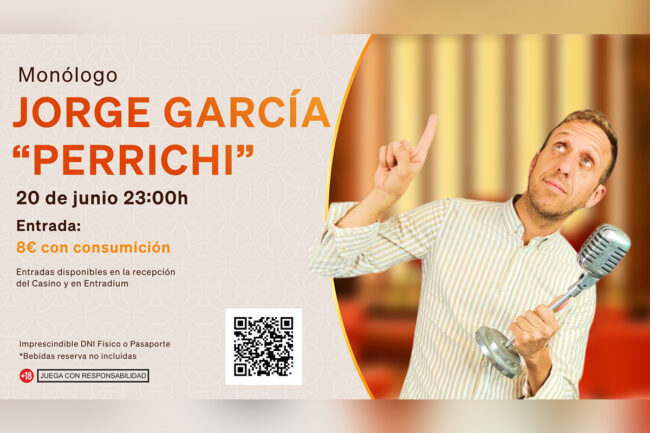 El próximo viernes 20 de junio a las 23:00 horas, el Casino Ceuta se volverá a llenar de risas y emoción con la actuación del reconocido humorista Jorge García, conocido artísticamente como ‘Perrichi’.