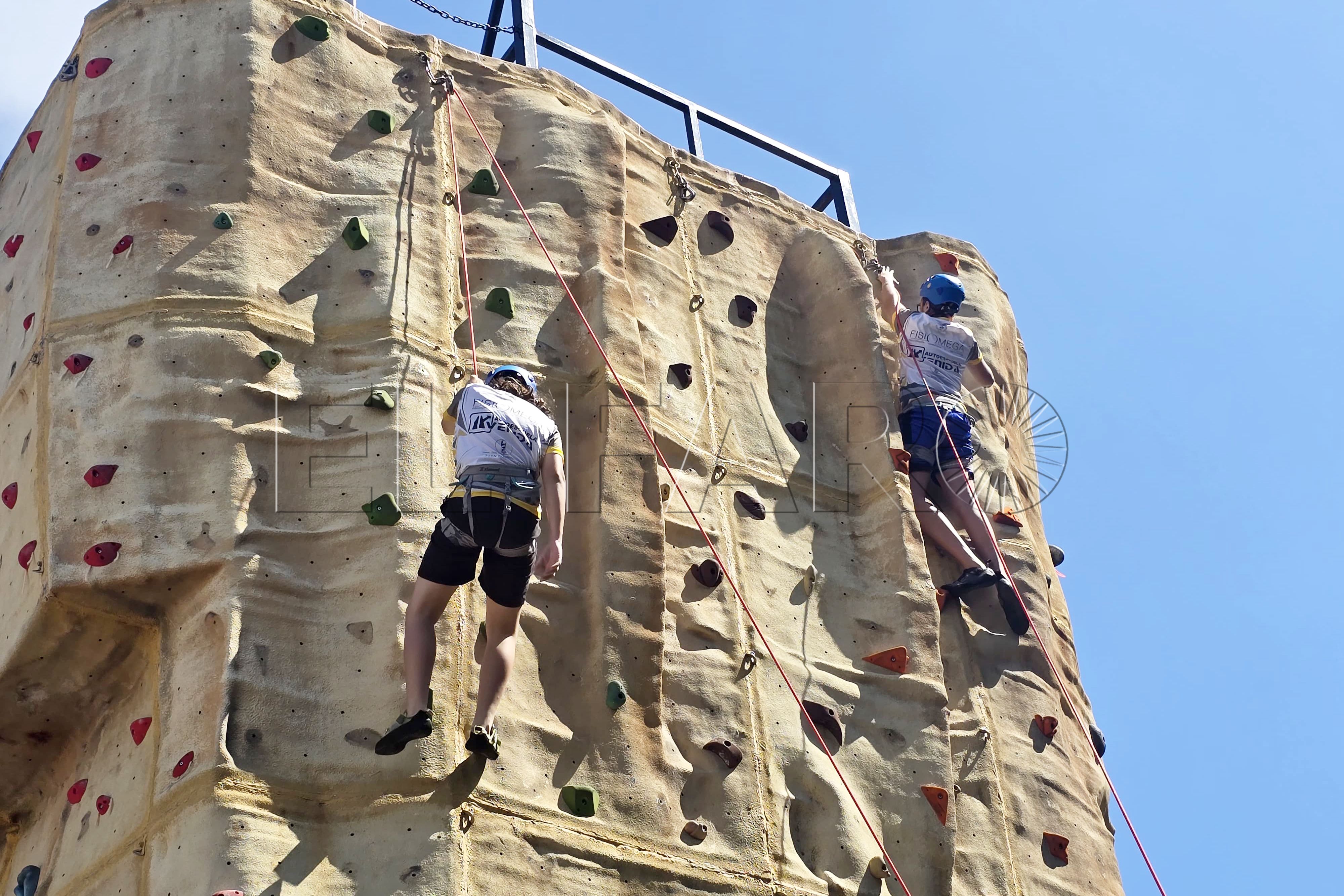 En el rocódromo de San Amaro, se observó un gran nivel de escalada ya que parece fácil escalar la pared de diez metros pero implica tener una gran fuerza en manos y pies para dar un impulso y llegar a lo más alto.