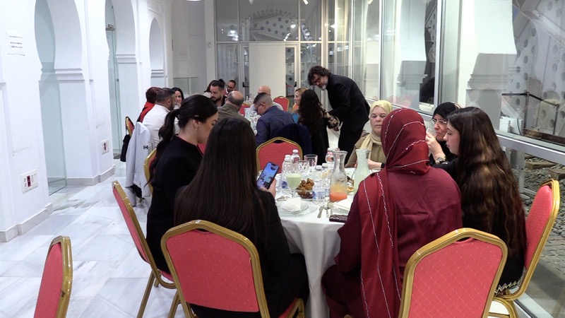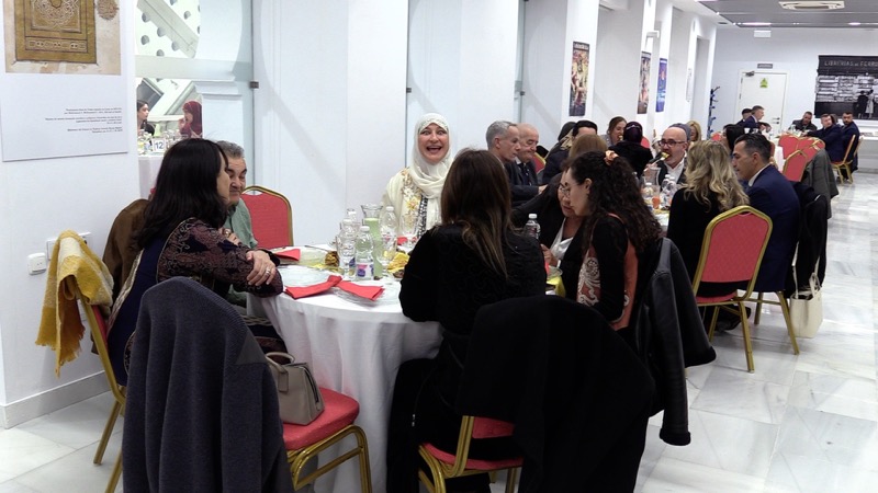 Pasadas las siete de la tarde, todos los asistentes han pasado al interior del Centro Cultural Estación del Ferrocarril, donde habían dispuestos meses para celebrar en convivencia esta ruptura de ayuno.