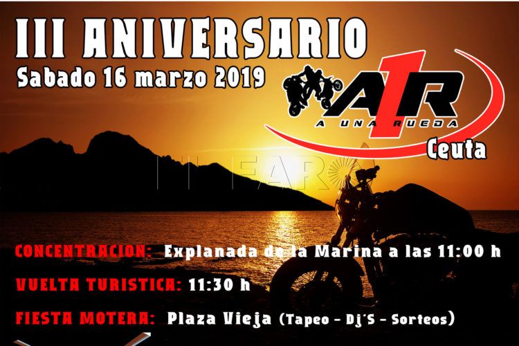 La asociación motera A1R, A una Rueda, celebrará el próximo día 16 de Marzo de 2019 su tercer aniversario con todos aquellos amantes de las motos y personas que deseen pasar un buen rato en un ambiente motero.