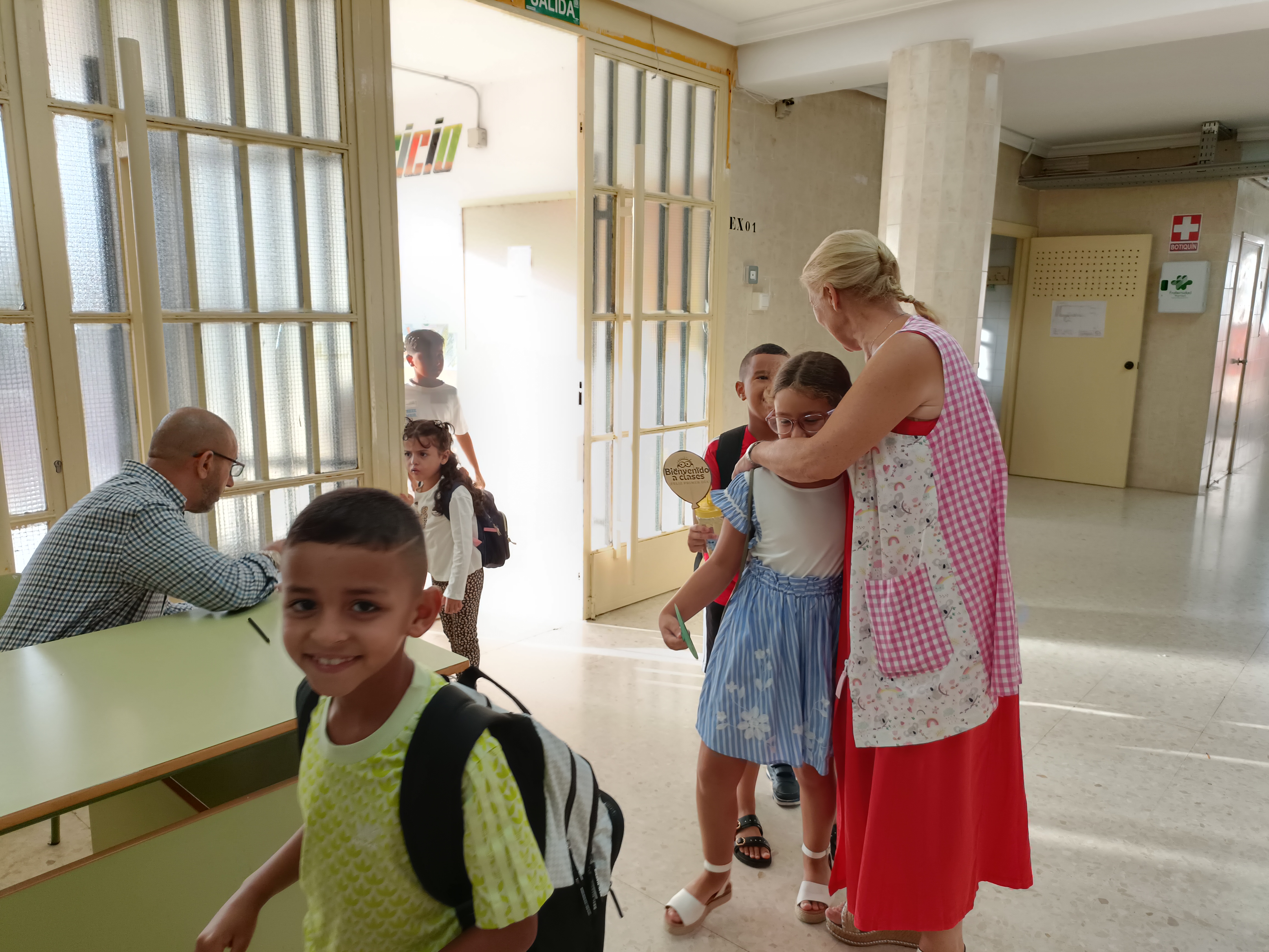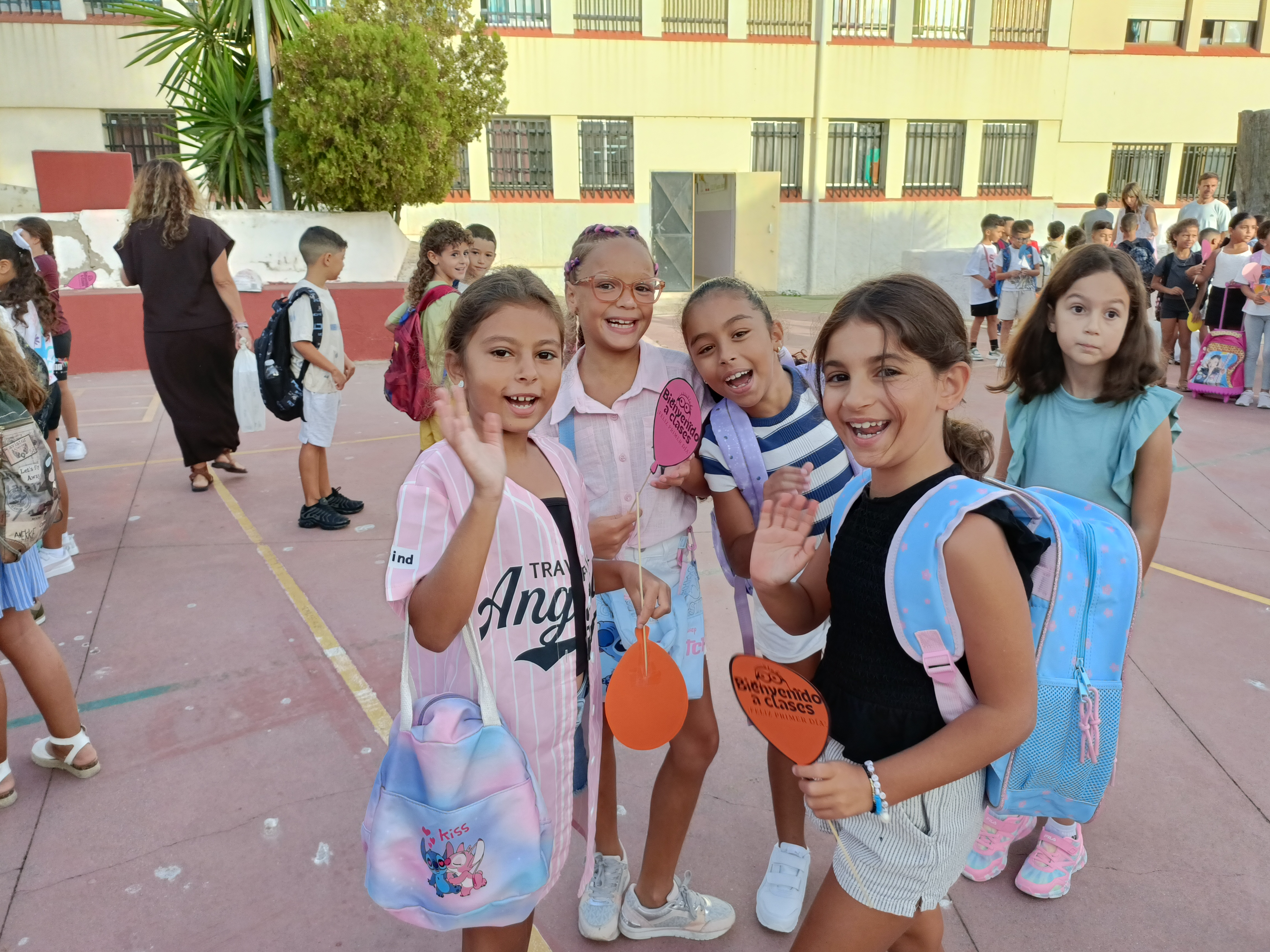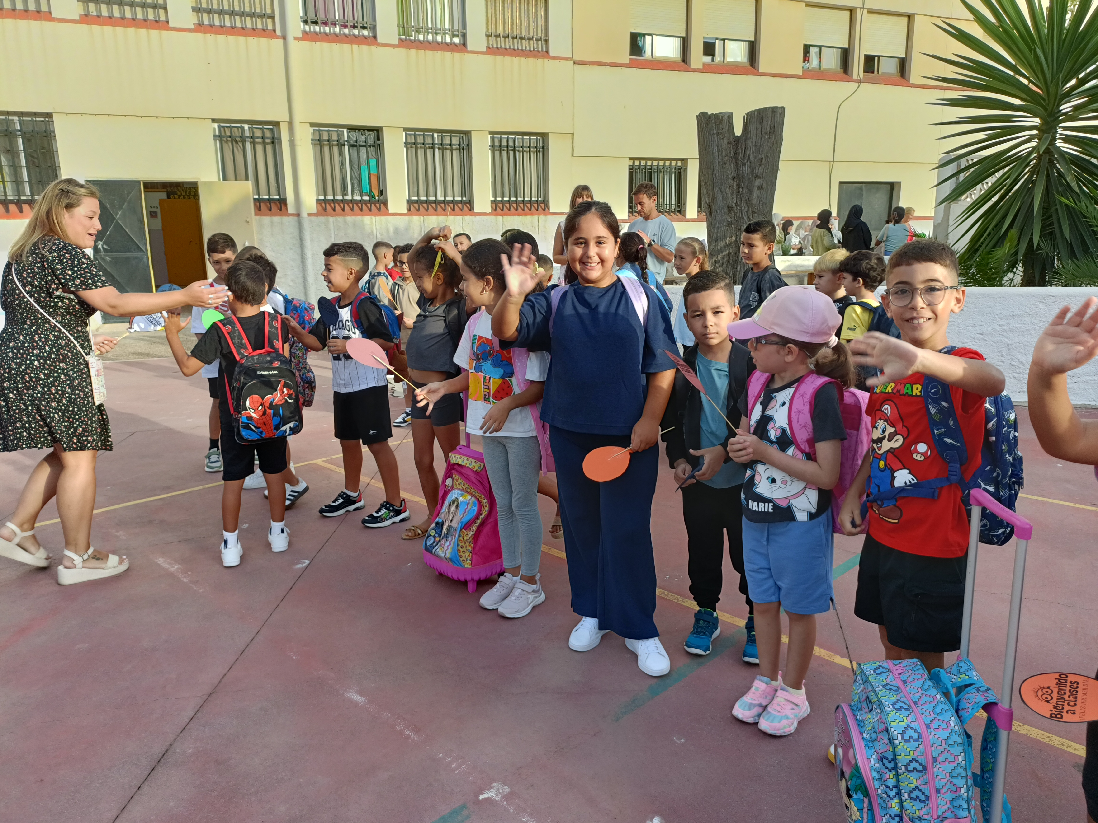 Además, tanto los maestros de Infantil como de Primaria han recibido a los alumnos en el patio y les han hecho un pequeño regalo. Se trataba de un abanico con un mensaje de ‘Bienvenidos al cole’.