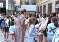 Pocos minutos después de las nueve, el timbre del colegio ha sonado marcando, ya sí, el inicio oficial de la vuelta a las aulas. Organizados por clases y acompañados por sus maestras, todos los alumnos, en filas, han ido pasando al interior del colegio para entrar a las clases y comenzar el nuevo curso.