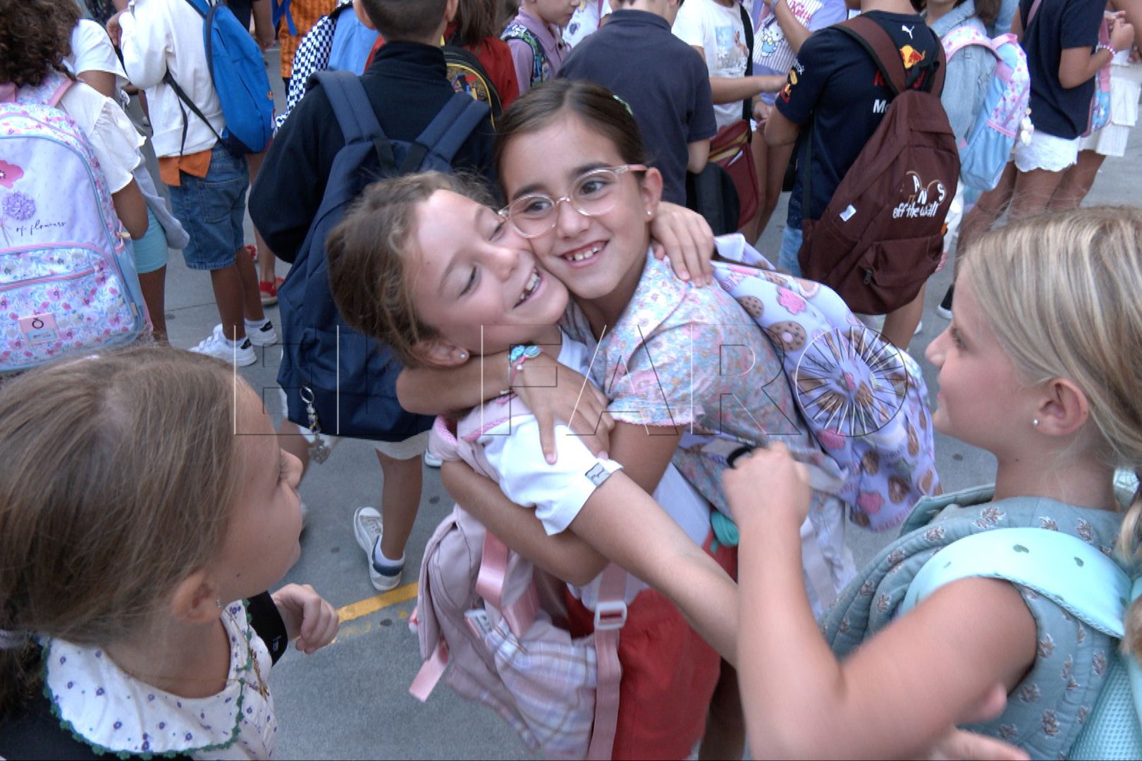 Ya en el patio del centro educativo, las maestras no han dudado en saludar y abrazar a los alumnos para recibirlos de nuevo después del verano. Tampoco han faltado los abrazos entre amigos y compañeros cuando se han juntado todos en la fila de su clase para pasar las aulas.