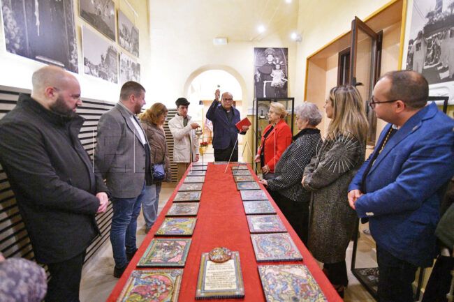 La muestra, titulada ‘Cronología de un Nacimiento’, propone un recorrido pictórico por los episodios más significativos del nacimiento de Jesús. El acto contó con la bendición del Padre Miguel, director espiritual de la Hermandad de San Antonio.