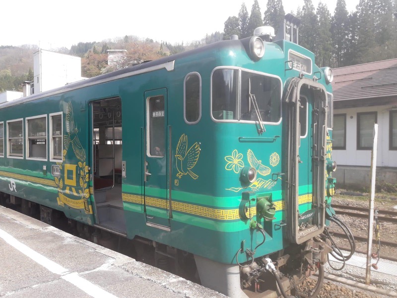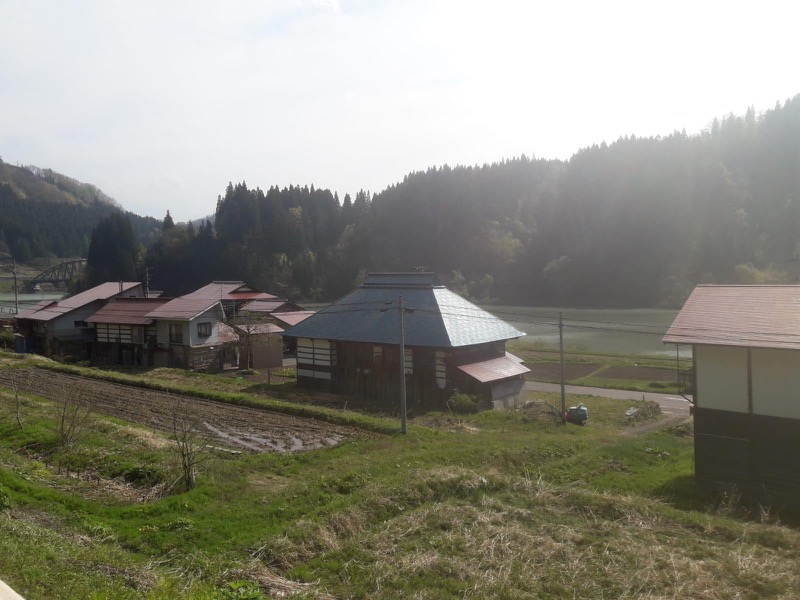 Subí al tren que me llevaría, a través de las montañas, a Aizu Kawaguchi. El tren traqueteaba lentamente en suaves subidas y bajadas, era un tren antiguo y con encanto. Las vistas que me regalaba de las montañas de Fukushima eran sorprendentes, pensé que en invierno, cubierto todo de nieve, debían verse aun más hermosas.
