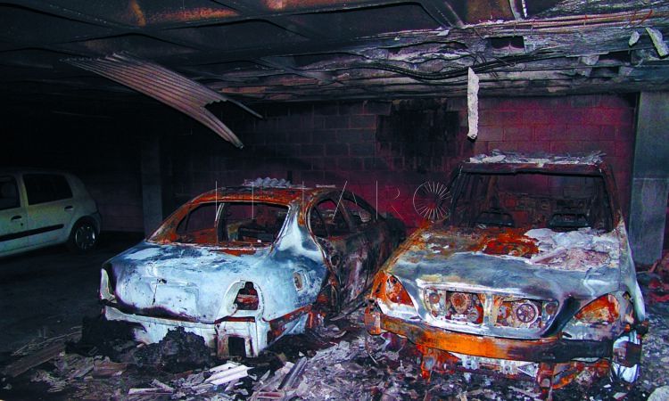 En el banquillo de los acusados se sentó M.E.B., acusado de un delito de robo con violencia y otro de daños por incendio, por los que el Ministerio Fiscal llega a pedir en su escrito de calificación hasta 5 años de prisión, a lo que se debe añadir la responsabilidad civil por los daños provocados en al menos cuarenta vehículos, muchos de los cuales quedaron siniestro total. También resultó dañada la estructura del garaje, llegando a existir peligro de derrumbamiento. Por esos delitos además de M.E.B. está acusado Z.B., quien no se presentó a juicio y que de hecho está declarado en rebeldía.