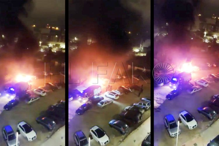 El incendio en un vehículo terminó extendiéndose hasta calcinar otros dos coches contiguos. Ocurría esta madrugada en Ceuta, junto al edificio Huerta del Molino ubicado en el Recinto Sur. El fuego se inició de uno de los automóviles estacionados en la vía, pero las llamas se propagaron hasta llevarse por delante otros dos más que se encontraban justo al lado. El Cuerpo de Bomberos recibía el aviso casi a las cuatro de la madrugada, a las 3:50 horas, por lo que rápidamente se movilizó a una dotación conformada por cinco efectivos a bordo de un vehículo.