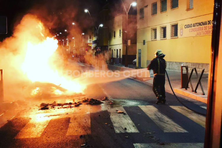 Nueva noche complicada y con varios servicios para el equipo de Bomberos de Ceuta, que se ha enfrentado a tres quemas diferentes, tres incendios habituales en las madrugadas de nuestra ciudad: vehículo por un lado, basura por otro y contenedor por otro lado más.
