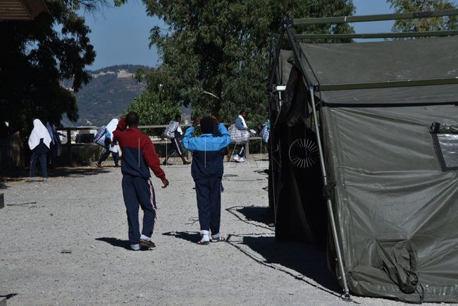 Durante todo el día se les ha ido reconociendo y filiando por los trabajadores del CETI y la Policía. Ahora van entrando poco a poco en estos habitáculos que servirán a modo de módulo para