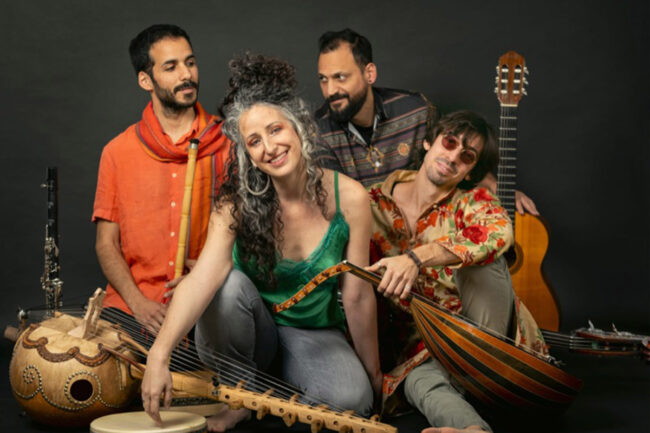 Nuestro proyecto integra múltiples tradiciones, no solo en los estilos musicales, sino también en los instrumentos. Yo interpreto arpas africanas y el laúd árabe, muy presente en la cuenca mediterránea. Nabil toca el ney turco, además del contrabajo y el piano, instrumentos vinculados a la tradición clásica europea. Ariana, por su parte, canta y toca el bendir, un tambor de mano muy extendido tanto en Oriente como en el Mediterráneo, además de panderos ibéricos.