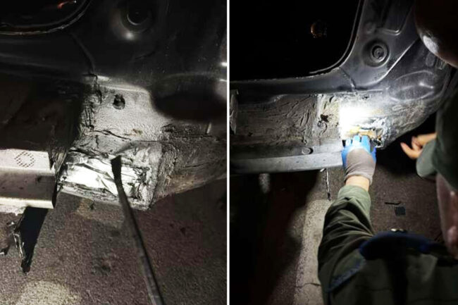 Los 166 kilos de hachís estaban ocultos en compartimentos secretos preparados para tal fin. Se encontraron partes distribuidas en el suelo del vehículo, además de un hueco en el parachoques trasero y otro debajo del maletero del coche.