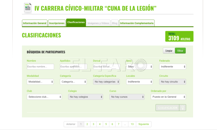 Ya son públicas las clasificaciones finales de todos los participantes en la carrera de la Cuna de la Legión. Esta edición, la cuarta, ha sido la más multitudinaria jamás celebrada en Ceuta. Poco más de 3.800 personas se dieron cita en las Murallas Reales para tomar la salida de cada una de las cuatro modalidades: carrera de 20 kilómetros, carrera de 50 kilómetros, mountain bike y la prueba infantil.