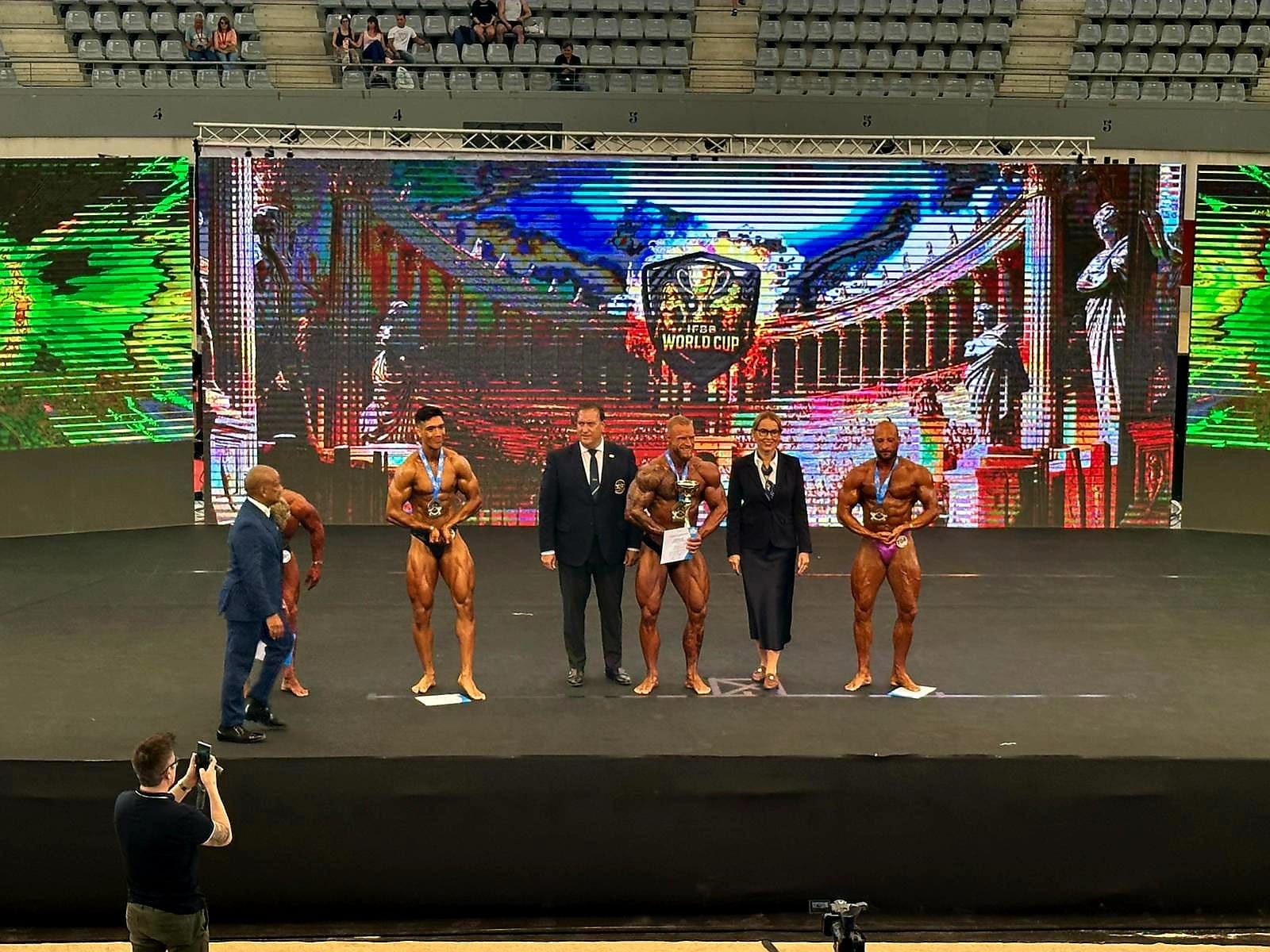 Miguel Vázquez ha llevado así a su atleta Javier Soto a lo más alto del pódium en la Copa del Mundo de Culturismo.
