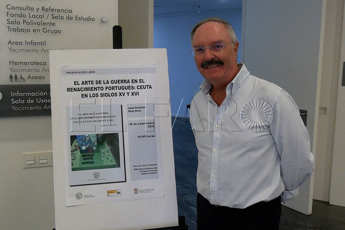 Rodeado de amigos y familiares, José Antonio Ruiz Oliva, doctor en Historia del Arte por la UNED, ha presentado en la tarde de este martes su libro ‘El arte de la guerra en el renacimiento portugués: Ceuta en los siglos XV y XVI’.