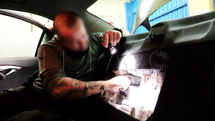 Componentes del Servicio Cinológico del Instituto Armado fueron los que detectaron la narcótica sustancia perfectamente escondida con vistas a burlar los controles aplicados a pie de embarque.