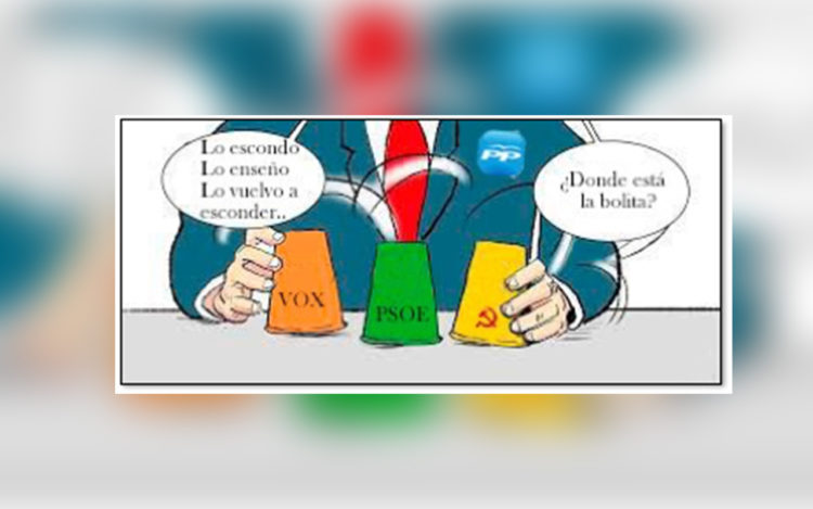 El modo de hacer política del Sr. Vivas y su trayectoria produce desconfianza y nos preguntamos ¿a quién seguirá en su forma de hacerla?, ¿a Aristóteles o a Maquiavelo? Pues seguramente a Groucho Marx cambiando sus principios cuantas veces haga falta. Quién nace lechón muere cochino, dice el dicho popular. Esperemos acontecimientos y recordemos que: “LA BOLA NO ESTÁ BAJO NINGÚN CUBILETE, PERMANECE ESCONDIDA EN LA MANO”.