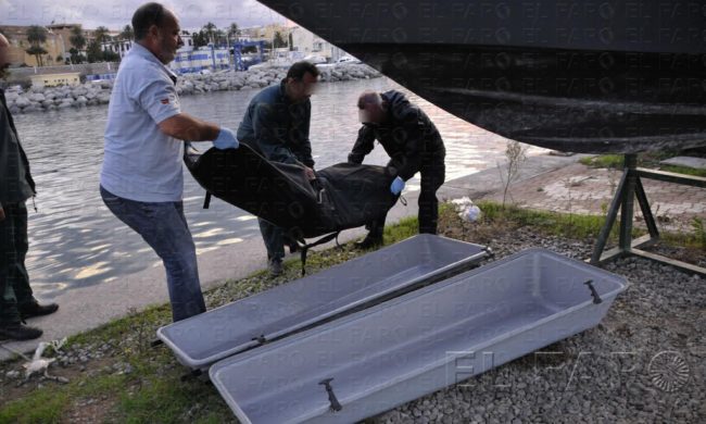 Agentes de la Guardia Civil adscritos al Servicio Marítimo localizaron en la tarde de ayer el cadáver de un joven subsahariano que llevaría, según estimaciones iniciales, unos diez días en el agua. El inmigrante, que podría tener unos 25 años, de complexión delgada y de casi dos metros de estatura, fue localizado a unas dos millas de Punta Almina, tras recibirse una alerta de la presencia de un cuerpo en el agua. Aunque llevaba algo más de una semana muerto, sí que se ha podido confirmar que se trata de un inmigrante subsahariano, con lo que se descarta que fuera el joven marroquí residente en Ceuta que desapareció haciendo entrenamiento de submarinismo en Punta Leona y cuyo cuerpo todavía no ha sido recuperado.
