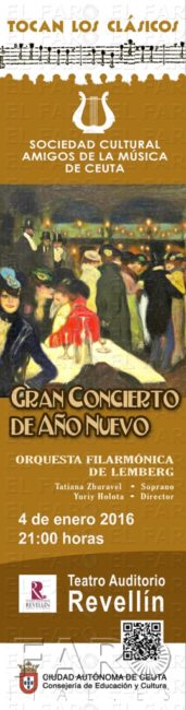 La Consejería de Educación y Cultura ha puesto ya a la venta en la taquilla y la web de la Ciudad (www.ceuta.es) las entradas para el Concierto de Año Nuevo, que ofrecerá el 4 de enero a las 21.00 horas en el Teatro Auditorio del Revellín la Orquesta Filarmónica de Lemberg (Ucrania), compuesta por 36 músicos y dirigida por Yuriy Holota.