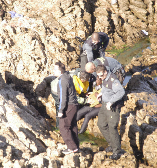 según han asegurado fuentes del Ingesa. La misma está embarazada de ocho meses y fue llevada, de manera inmediata, desde la misma playa en una ambulancia hasta el propio centro hospitalario.