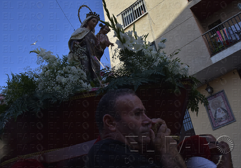 Jóvenes y mayores acompañaron a su patrona bajo las marchas  procesionales de la Agrupación Musical Nuestro Padre Jesús Caído y Virgen de la Amargura. El fervor y devoción de todos quedó marcado durante todo el recorrido que incluyó la barriada de Villajovita hasta llegar a las aguas de la playa Benítez, para regresar nuevamente a su hornacina en la barriada del Puerto, hasta el próximo año.