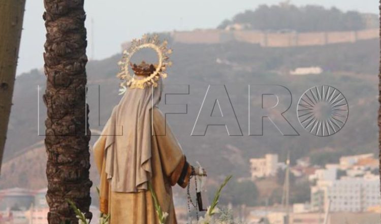 En la capilla de la Almadraba  y en la capilla de la iglesia de África, su presencia permanecía todo el año… y  en el día de su festividad, el 16 de julio, era el día señalado   para  pasearla por las calles de Ceuta. Mi yaya, y yo, esperamos su paso en la antigua calle la Muralla, hoy: Paseo de las Palmeras.