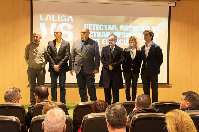 El acto contó con la presencia del presidente de la Ciudad, Juan Vivas; el consejero de Deporte, Nicola Cecchi; el superintendente de la Policía Local, Sebastián Vega; y el jefe superior de la Policía Nacional, Eloy Román, además de otros representantes del ámbito deportivo y de LaLiga.