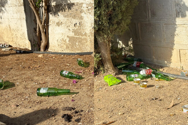 Además, señalan que son muchas las personas que cada día pasean por esa zona y no es agradable encontrarse con estas imágenes de suciedad y latas de cervezas tiradas.
