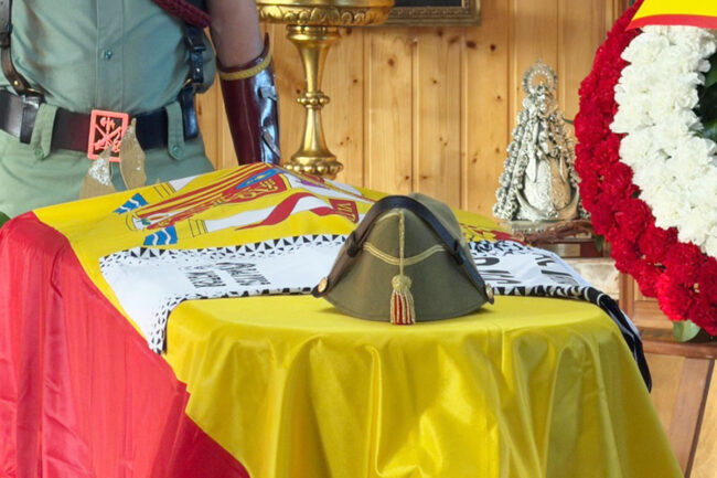 El cuerpo está velado por legionarios que van haciendo el relevo. El compañero, el amigo, quien era uno de los suyos, está arropado hasta el final.