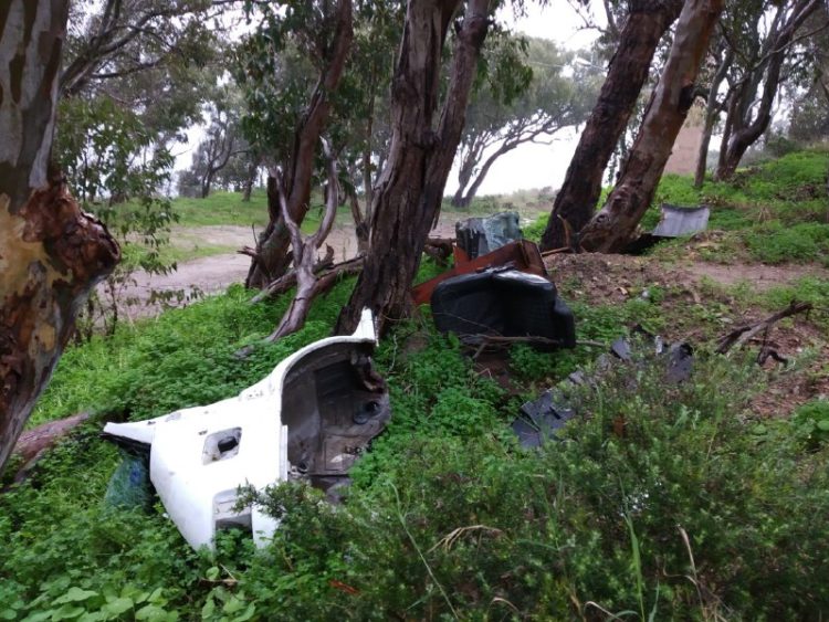 El pasado domingo los habitantes del lugar se llevaron una sorpresa al ver partes de un vehículo, despiezado, tirados en el camino que conduce al monolito del Llano Amarillo, destacando hasta la matrícula, totalmente legible, del coche. Un delito medioambiental que están hartos de presenciar en esta zona de la ciudad.