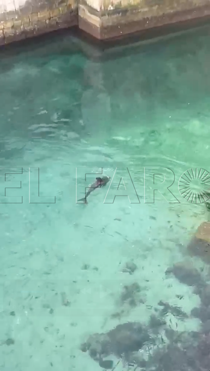 Son muchos los viandantes que se han asomado para comprobar esta imagen: la de un delfín, pequeño, en la zona.