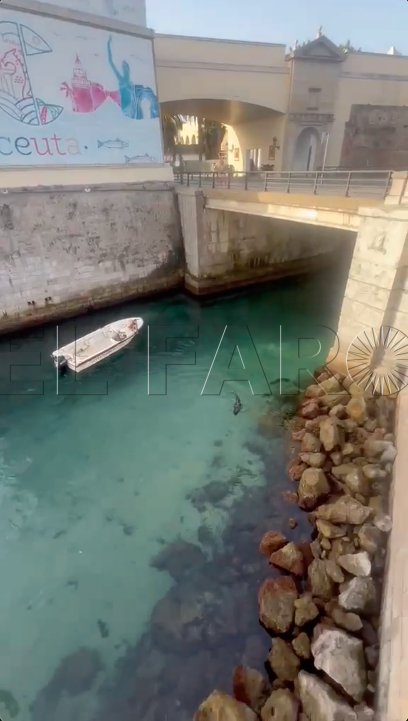 Ha sido un hallazgo sorprendente en esta misma mañana de lunes. Un delfín desorientado en el Foso de Ceuta.