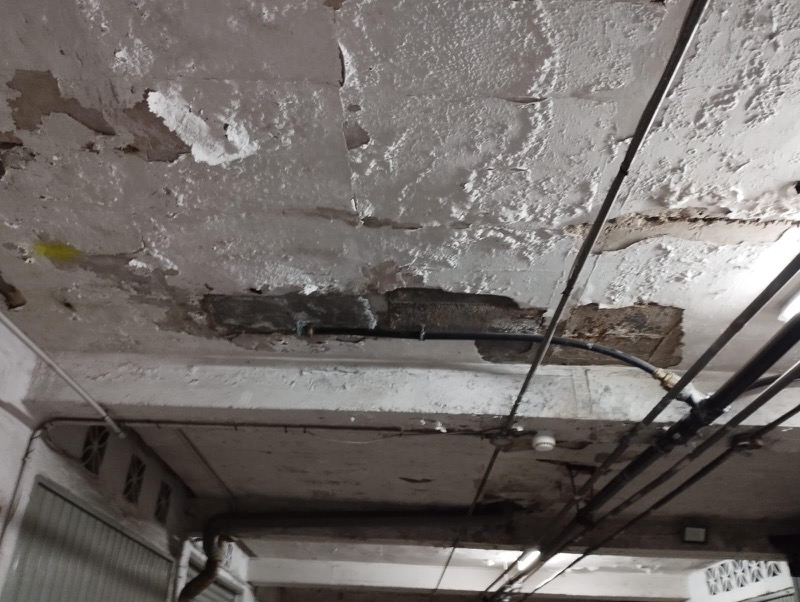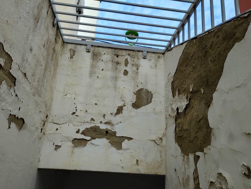 Los afectados también señalan la caída de trozos pequeños de techo sobre sus cabezas y temen que el estado de la infraestructura empeore si continúan las lluvias que han sorprendido a Ceuta esta última semana.
