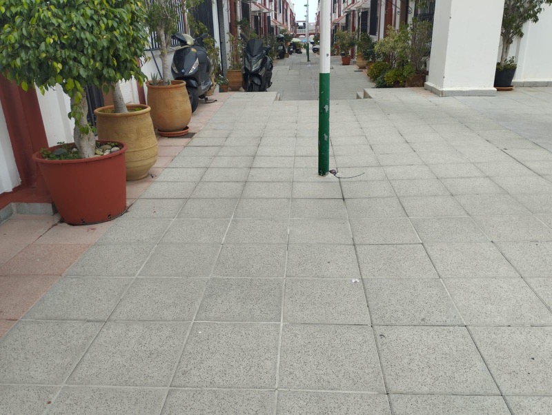 Además del evidente problema relacionado con las filtraciones y el garaje, están los boquetes que se encuentran en el acerado de la barriada y que los vecinos quieren ver desaparecidos.