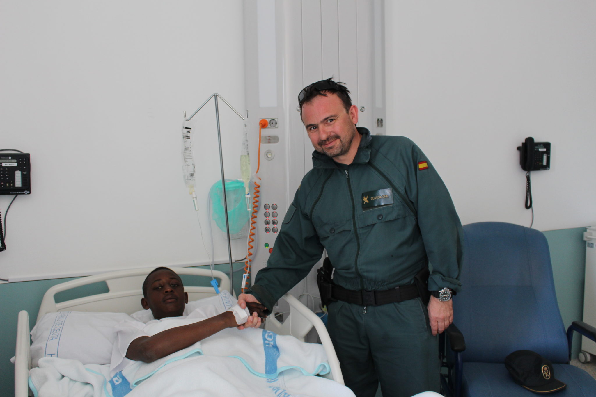 Izado a la embarcación y trasladados a la base del Servicio Marítimo de la Guardia Civil, el inmigrante S.B, natural de Guinea fue traslado hasta el hospital del INSALUD para que fuera atendido de las heridas que presentaba y el Guardia Civil socorrido por los servicios de Cruz Roja de una grave hipotermia."