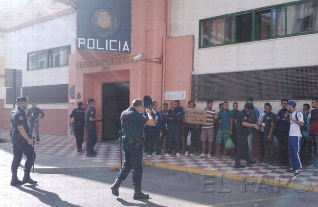 La Policía prevé continuar con las identificaciones de argelinos conforme vayan recibiendo las respuestas a las solicitudes de asilo que se están cursando. De ser desfavorables, se pueden practicar las detenciones y posterior expulsiones después de haber pasado por centro de internamiento. Ante esta situación, los argelinos decidieron protestar por la detención de sus compatriotas. Y lo hicieron acudiendo desde la Plaza de los Reyes hasta la Jefatura Superior, con una improvisada pancarta de cartón en la que habían escrito que querían salir de Ceuta. La Policía se desplegó para evitar un mayor acercamiento de los argelinos hacia la sede oficial, instando a los casuales manifestantes a que depusieran su actitud y abandonaran el lugar. Poco después regresaban sobre sus pasos para volver a ocupar parte de la plaza.