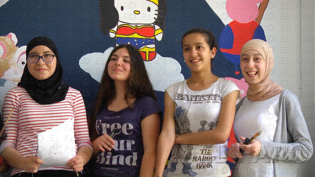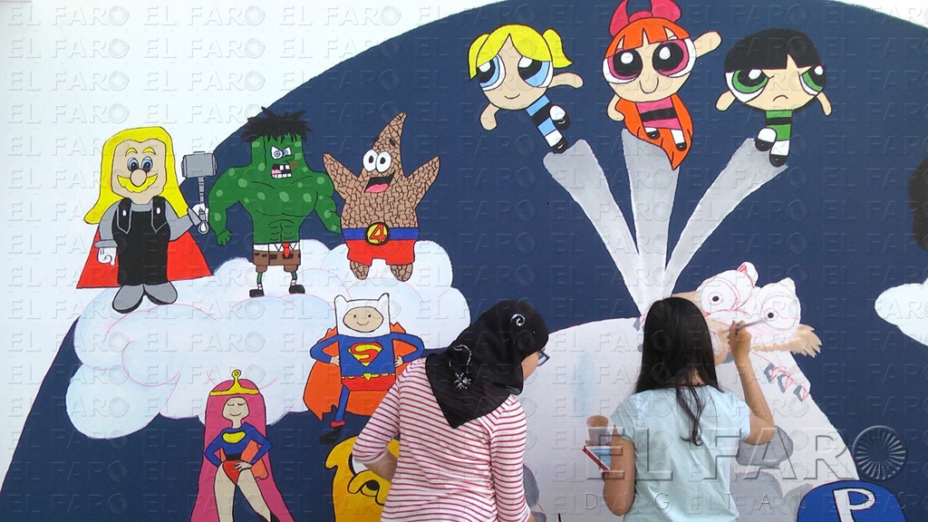 Nawal, Fatima Sora, Verónica o Mohamed son alguno de los chicos que participan en este proyecto, cuyo boceto elaborado por ellos mismos, ahora plasman en la pared. “Es una mezcla de superhéroes y animación infantil para que los niños que vengan al médico se intenten relajar”, explican.