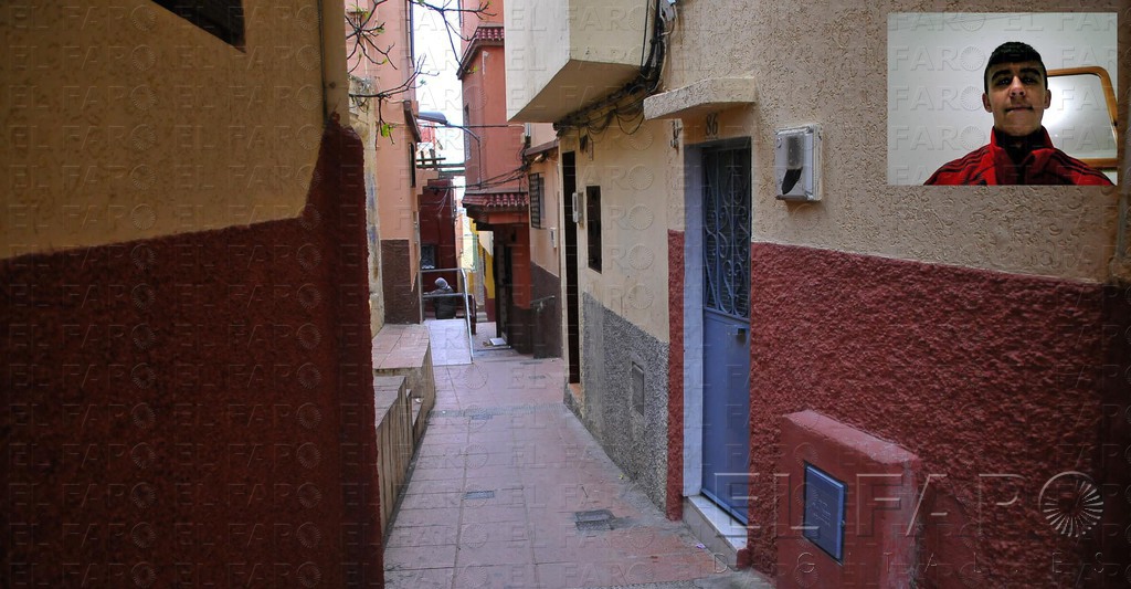 Escenario de los tiros efectuados contra la víctima del último crimen con arma de fuego en el Príncipe. Al parecer, el joven intentó huir calle abajo. Arriba, fotografía de Munir