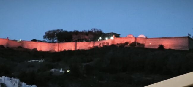 Este sábado, la Fortaleza del Hacho y el Foso se han iluminado de naranja para mostrar a todos los caballas que hay un grupo de personas cada vez más amplio que alza la voz por una dignidad animal.