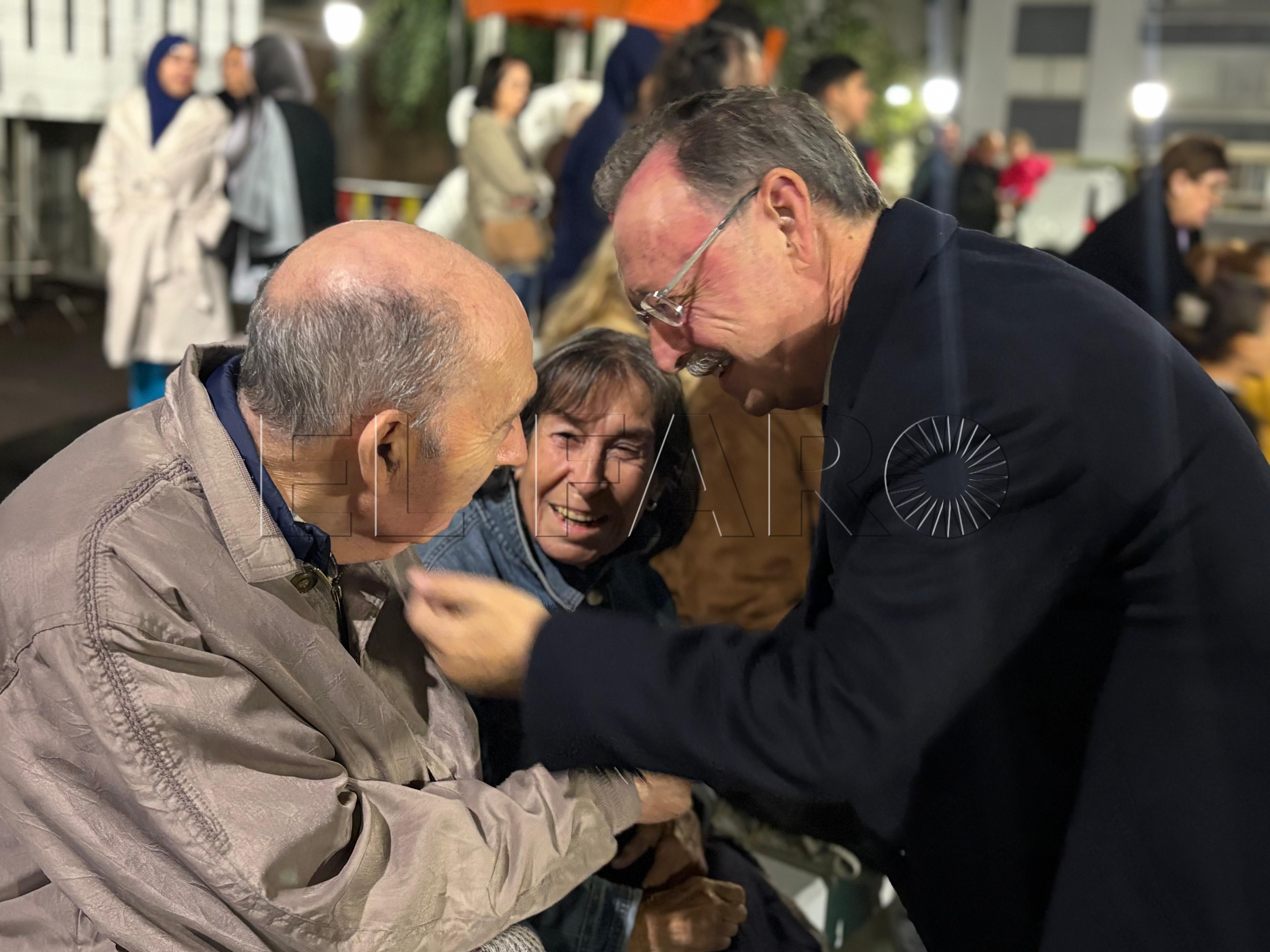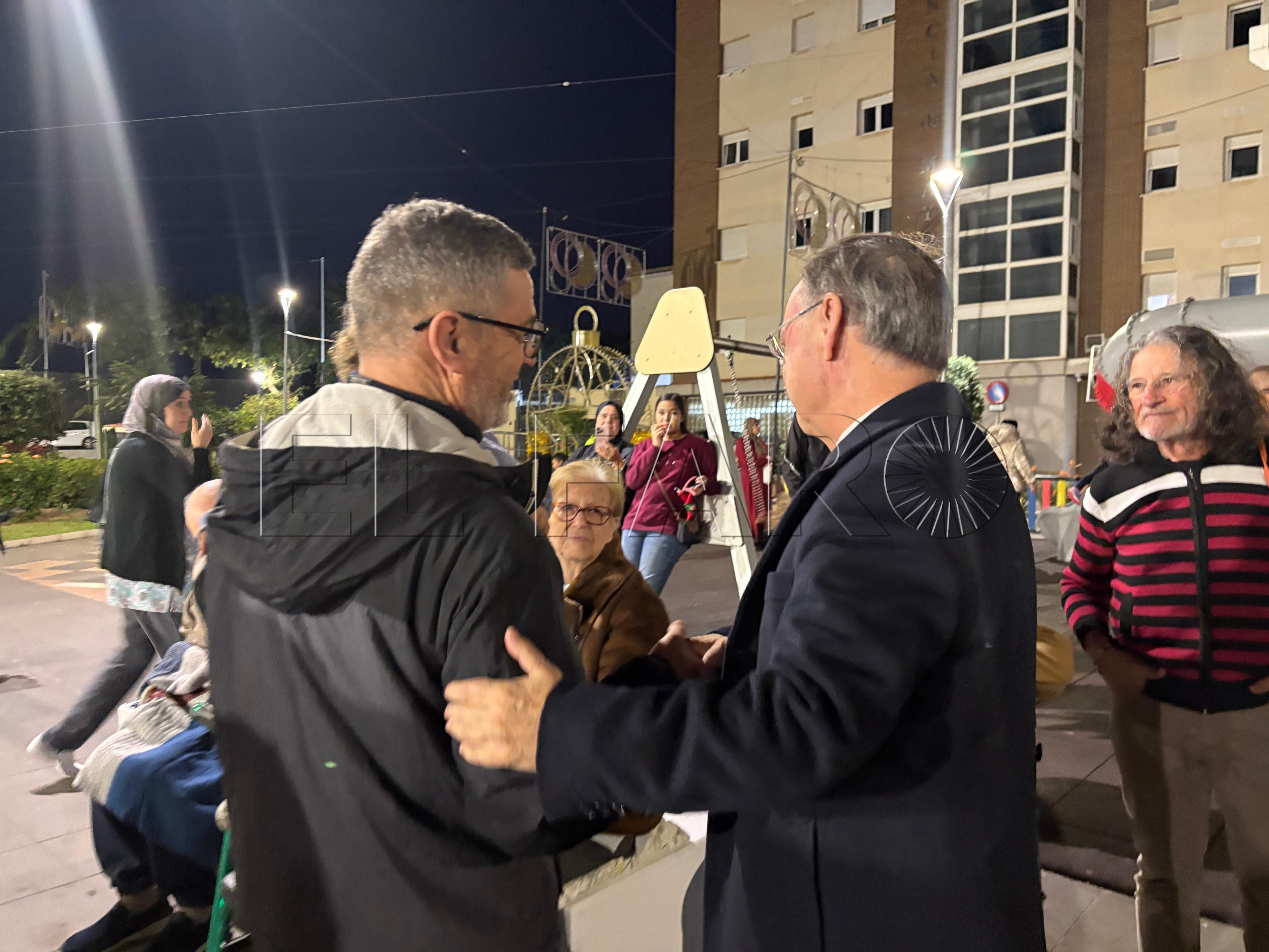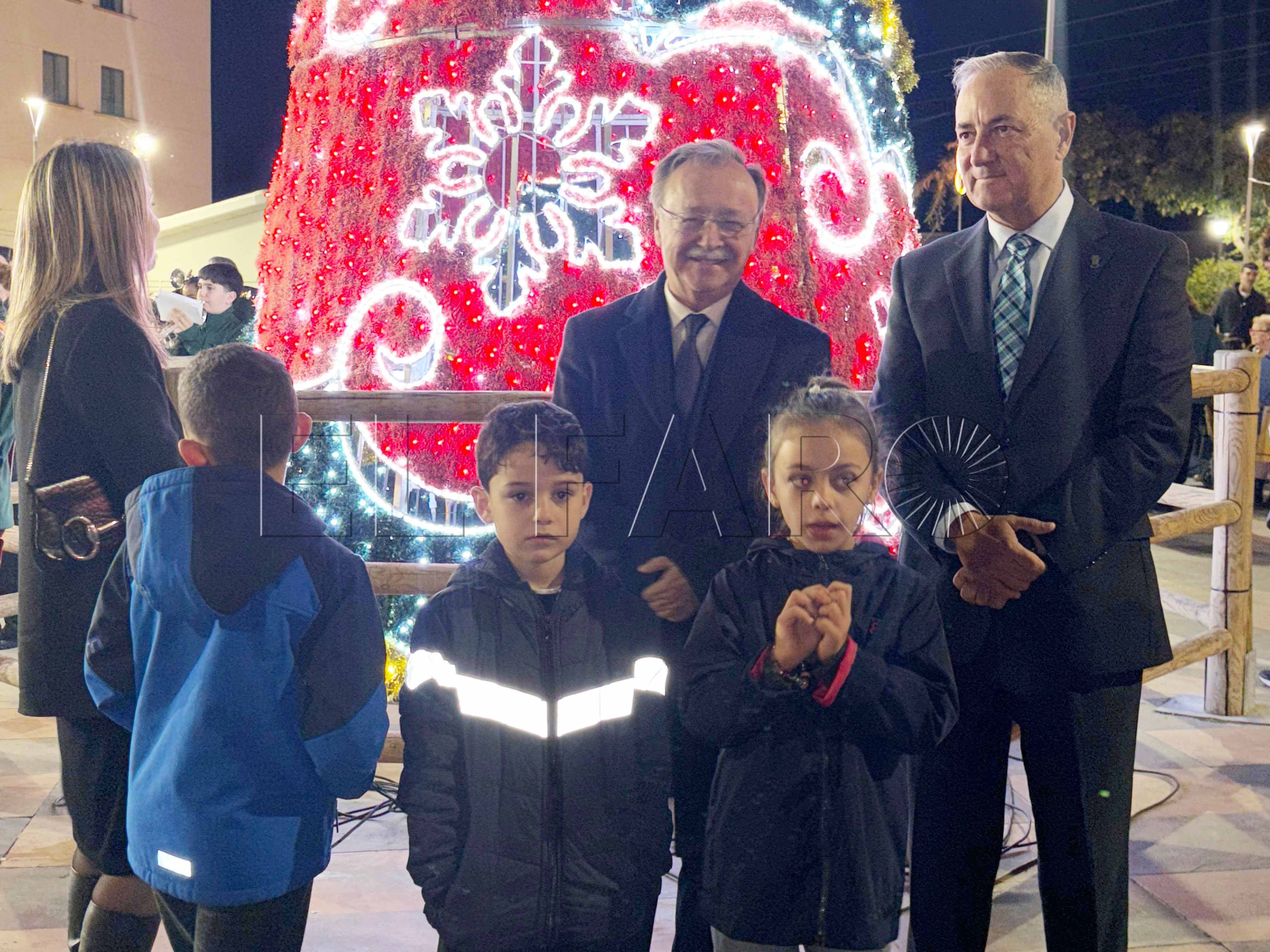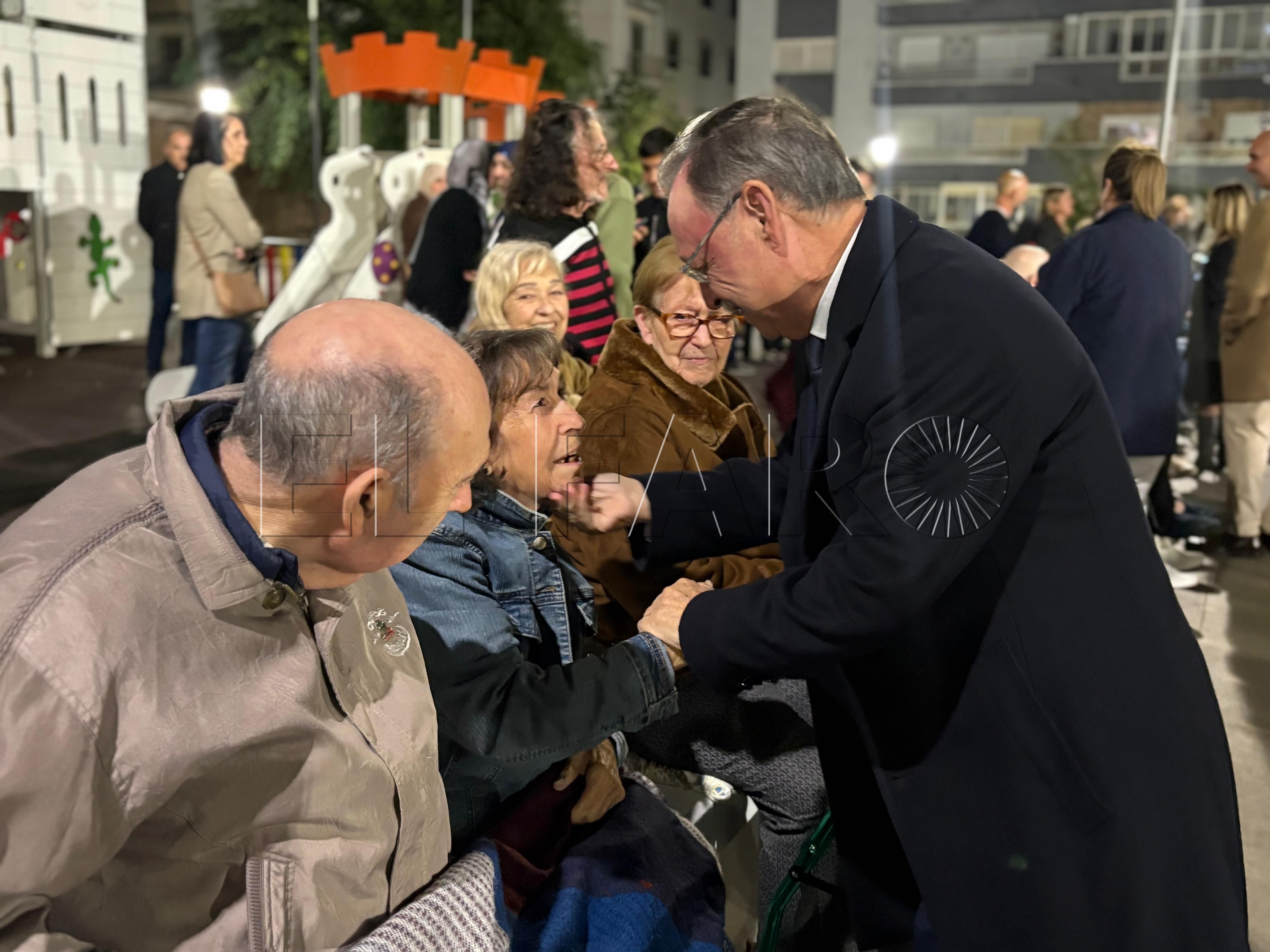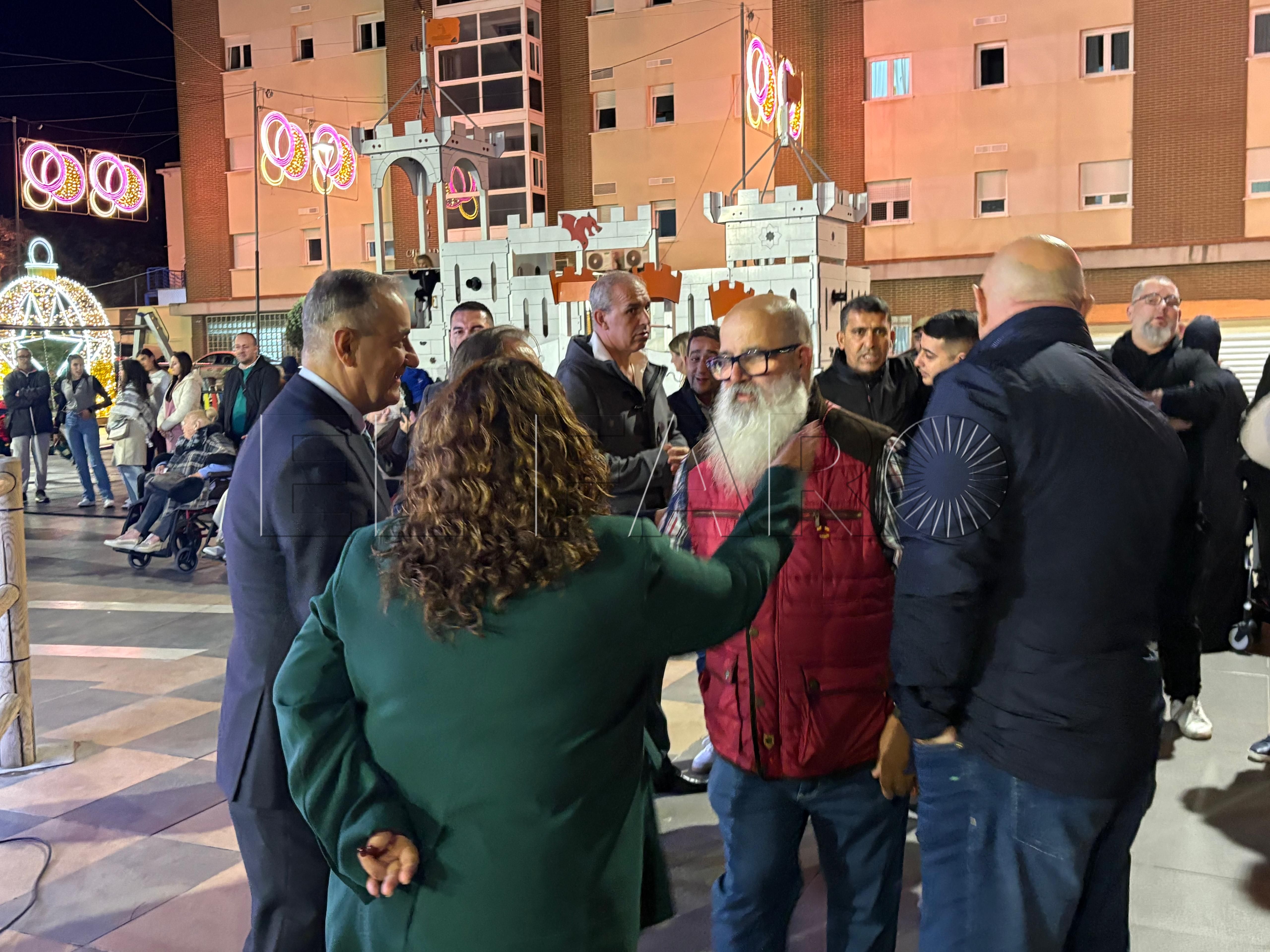 Uno de los momentos más emotivos ha ocurrido poco antes del encendido. El presidente Juan Vivas ha llegado a la plaza unos minutos antes y se ha acercado a saludar a los ancianos de la residencia Virgen de África, que habían sido dispuestos frente al árbol de Navidad instalado en el centro de la plaza.