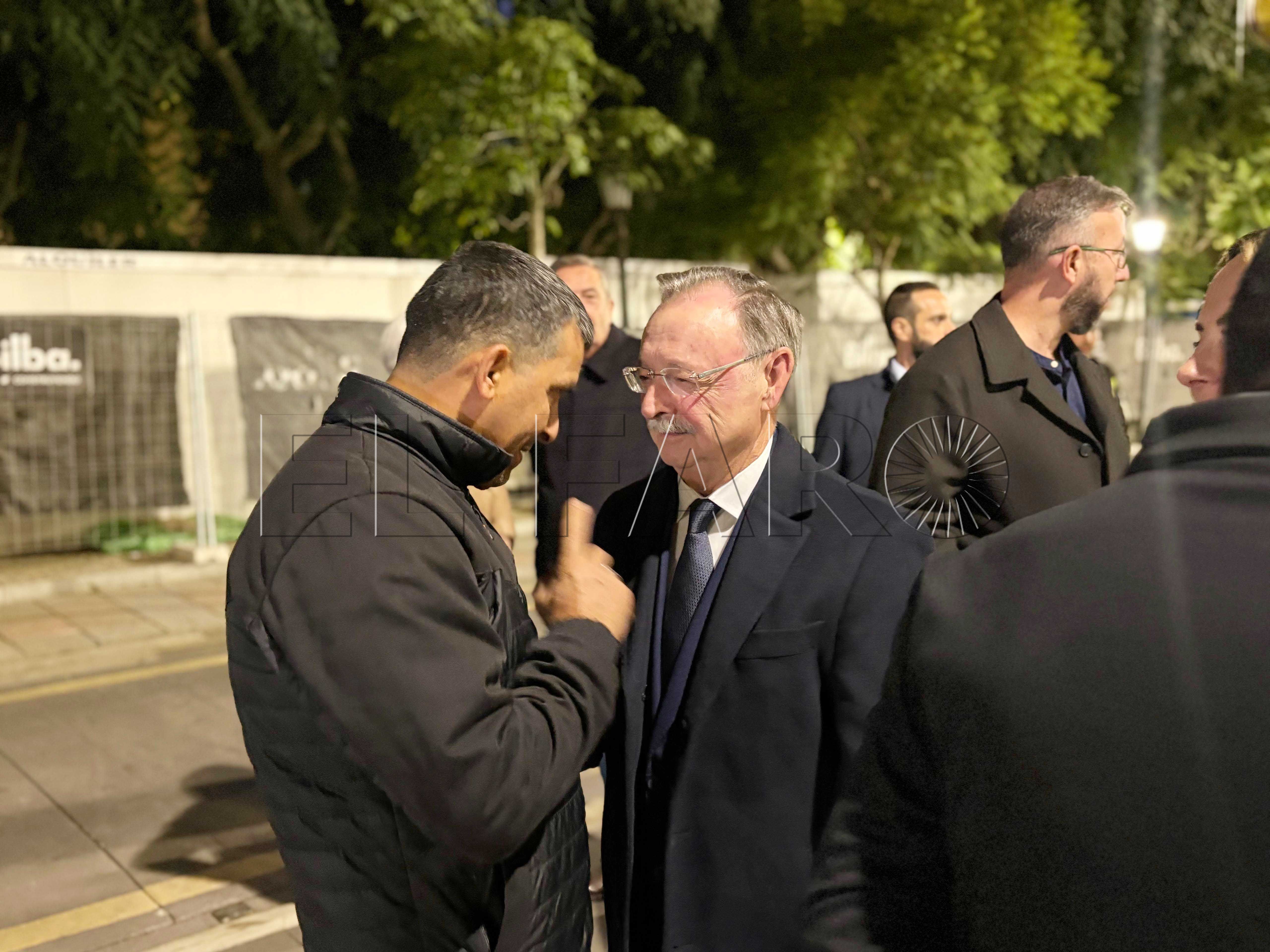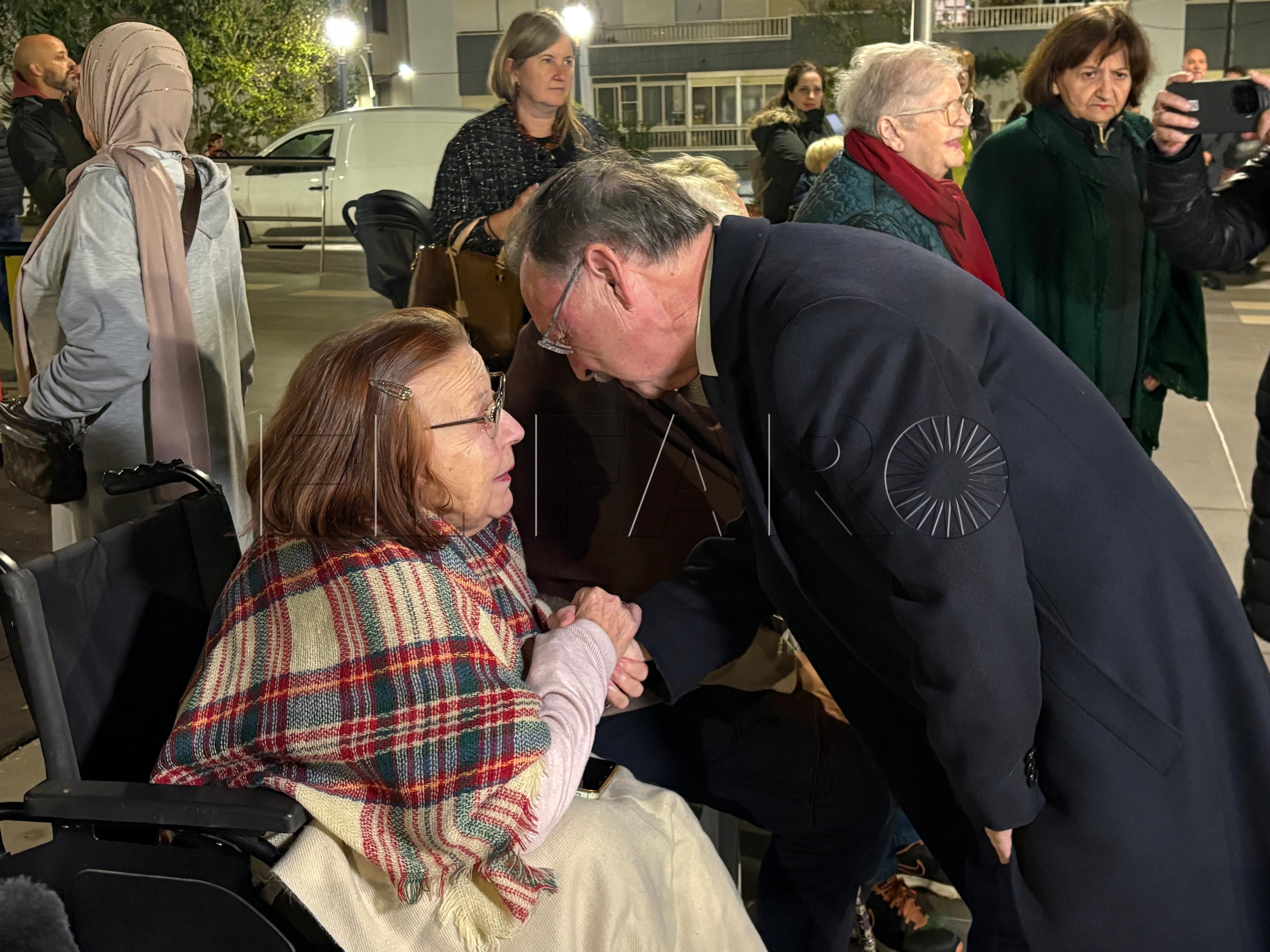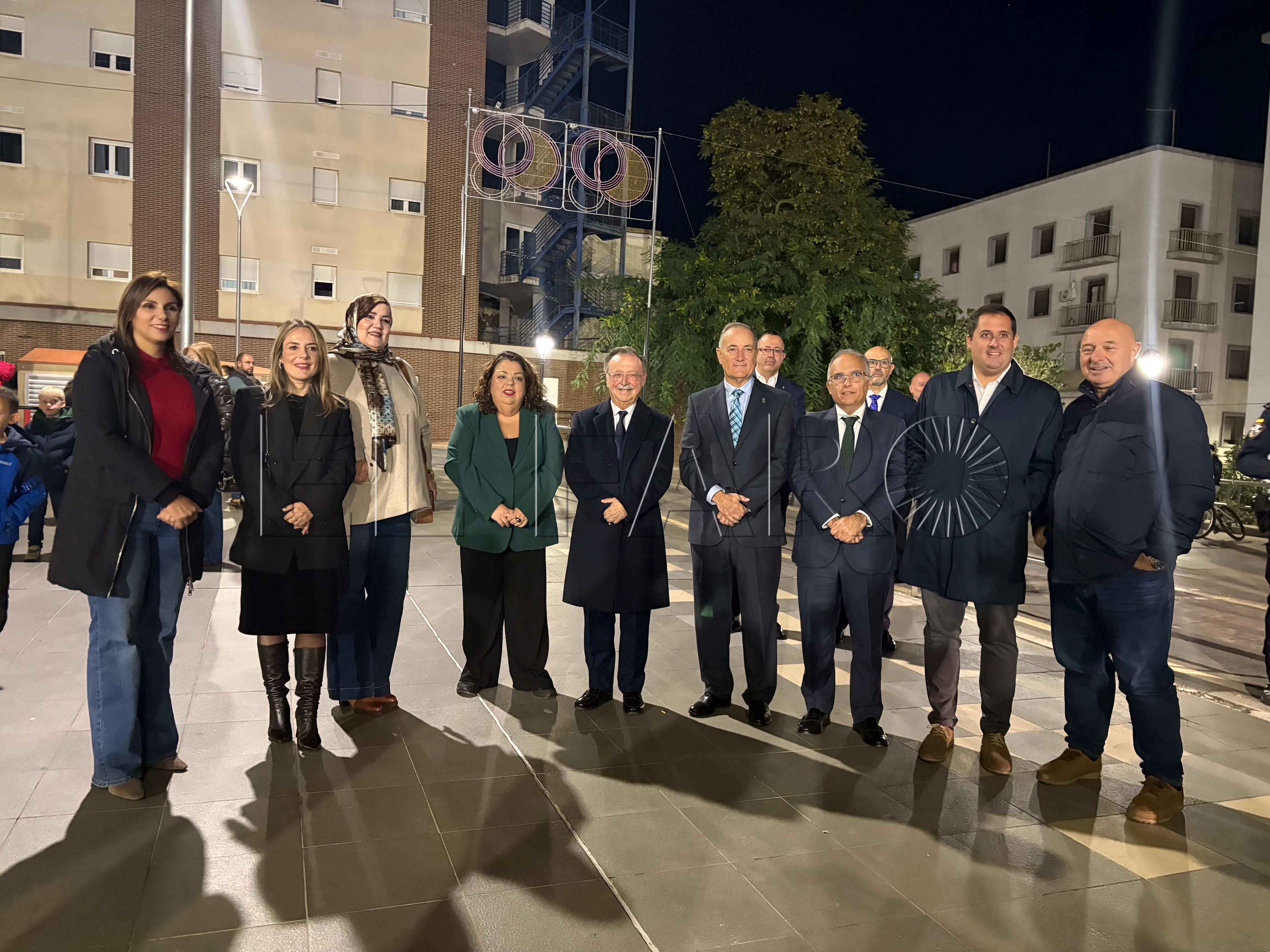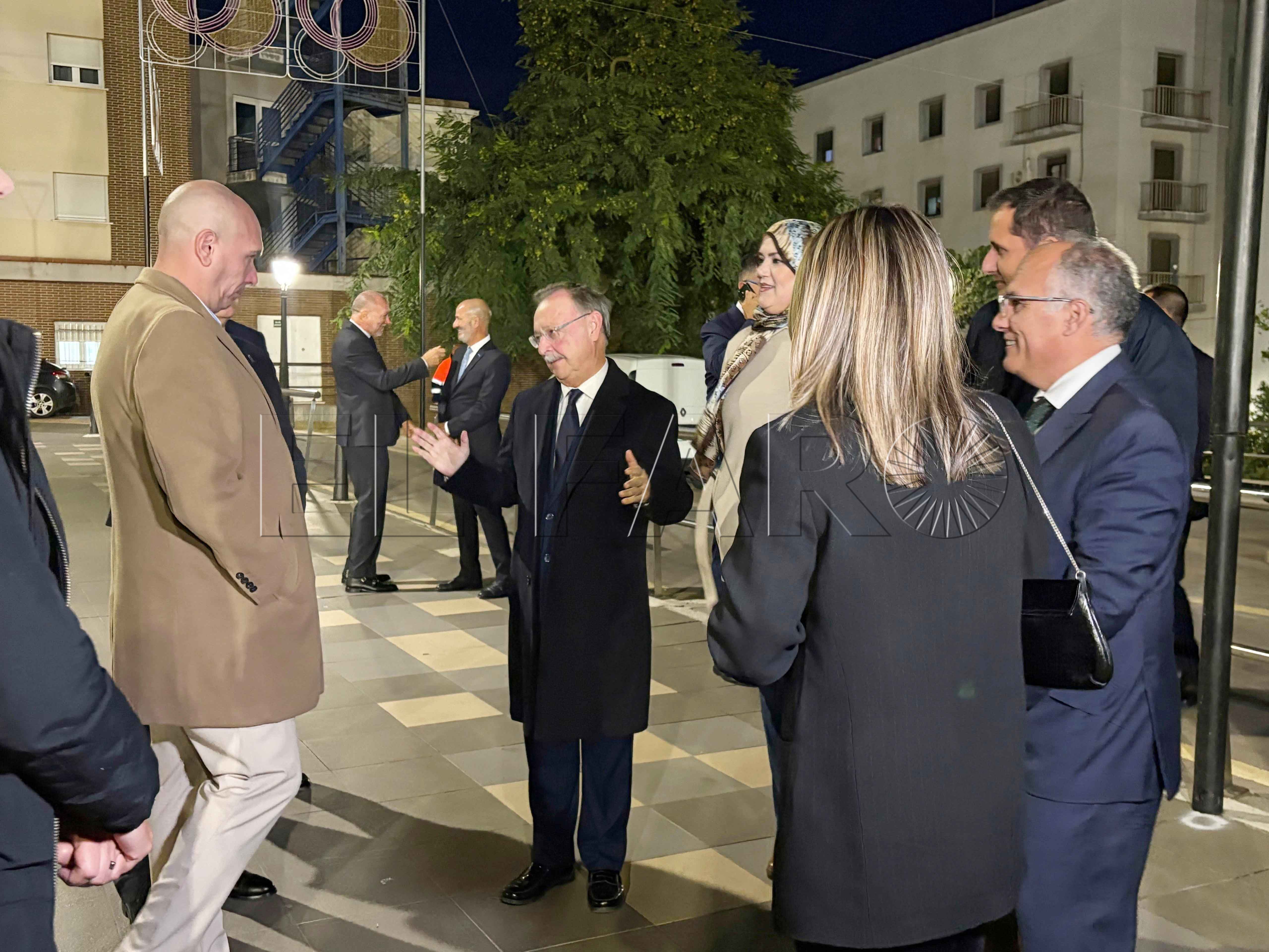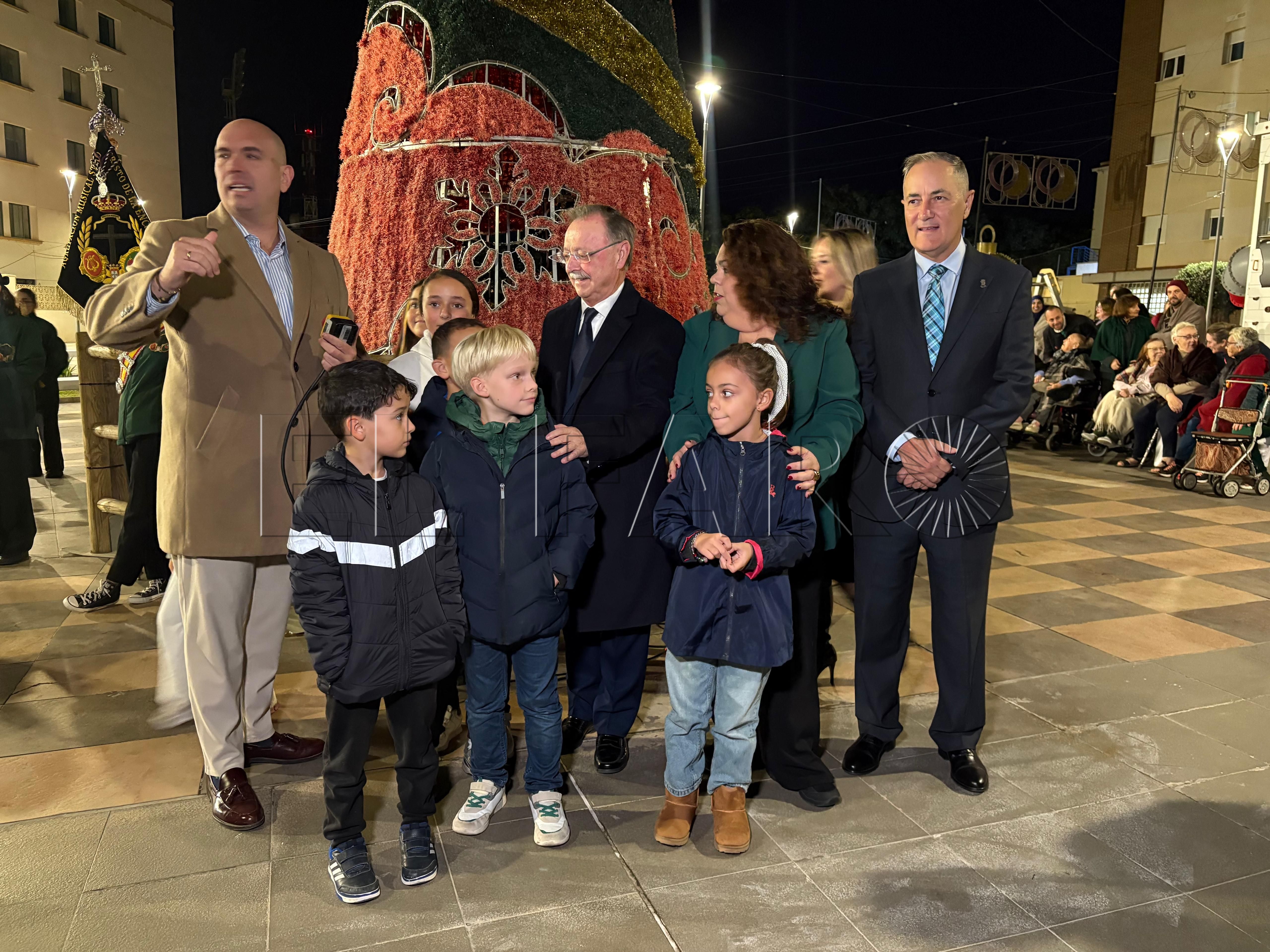 Uno de los momentos más emotivos ha ocurrido poco antes del encendido. El presidente Juan Vivas ha llegado a la plaza unos minutos antes y se ha acercado a saludar a los ancianos de la residencia Virgen de África, que habían sido dispuestos frente al árbol de Navidad instalado en el centro de la plaza.