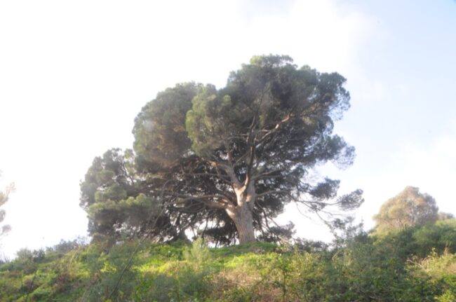 “Otro árbol que requiere protección es un Pino piñonero (Pinus pinea). Este pino tiene parte de sus raíces al aire debido a que la erosión está haciendo que el terreno donde se encuentra esté sufriendo desprendimientos. La situación es tan dramática que estas raíces que se encuentran al aire han sido afectadas también por los incendios del pasado verano, acelerando el proceso de deterioro del mismo. Se propone la creación de un muro de contención y posterior relleno de tierra en los alrededores del pino, para que las raíces vuelvan a estar bajo tierra.”