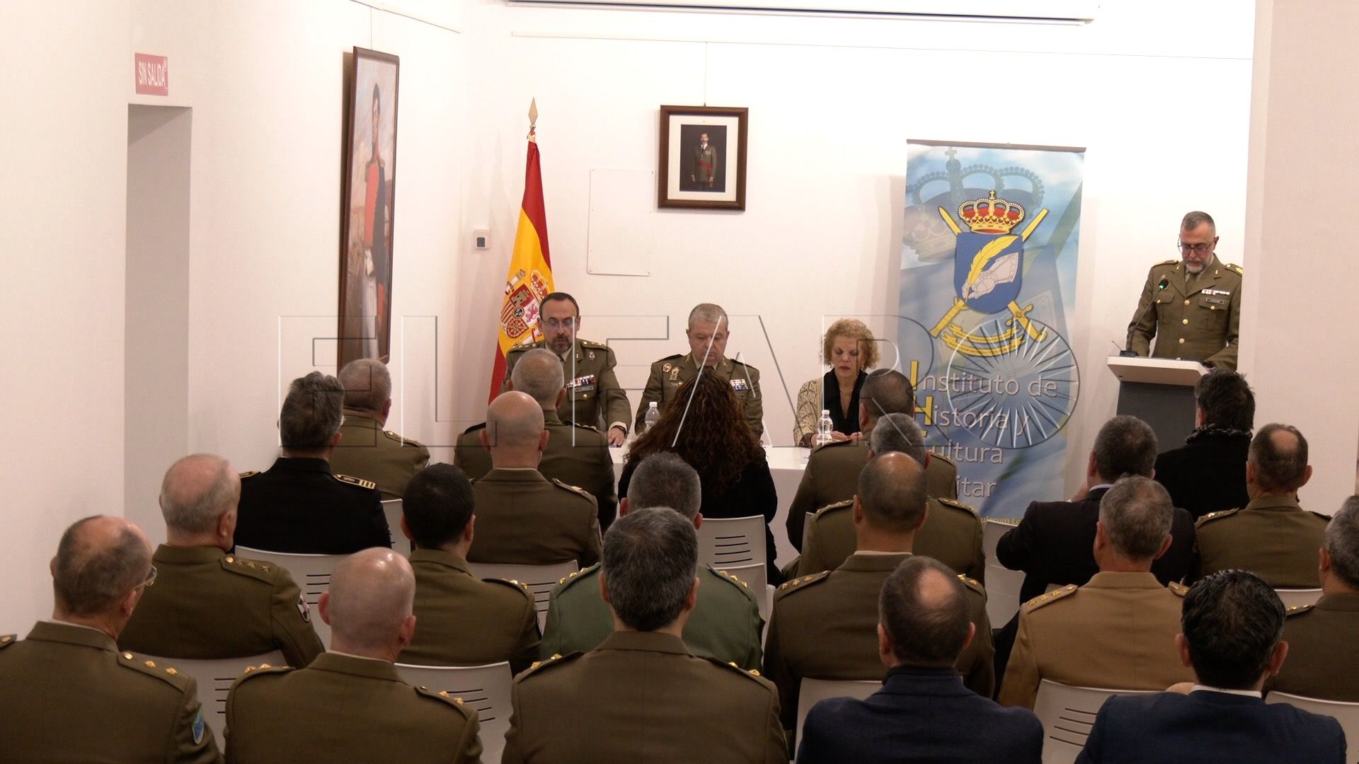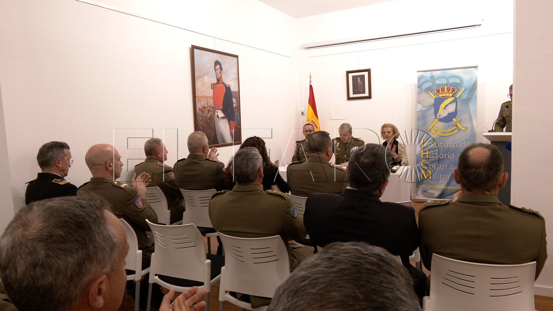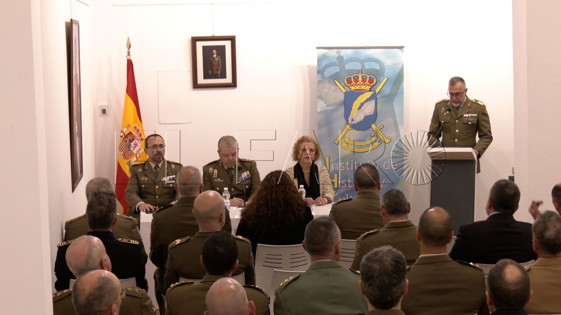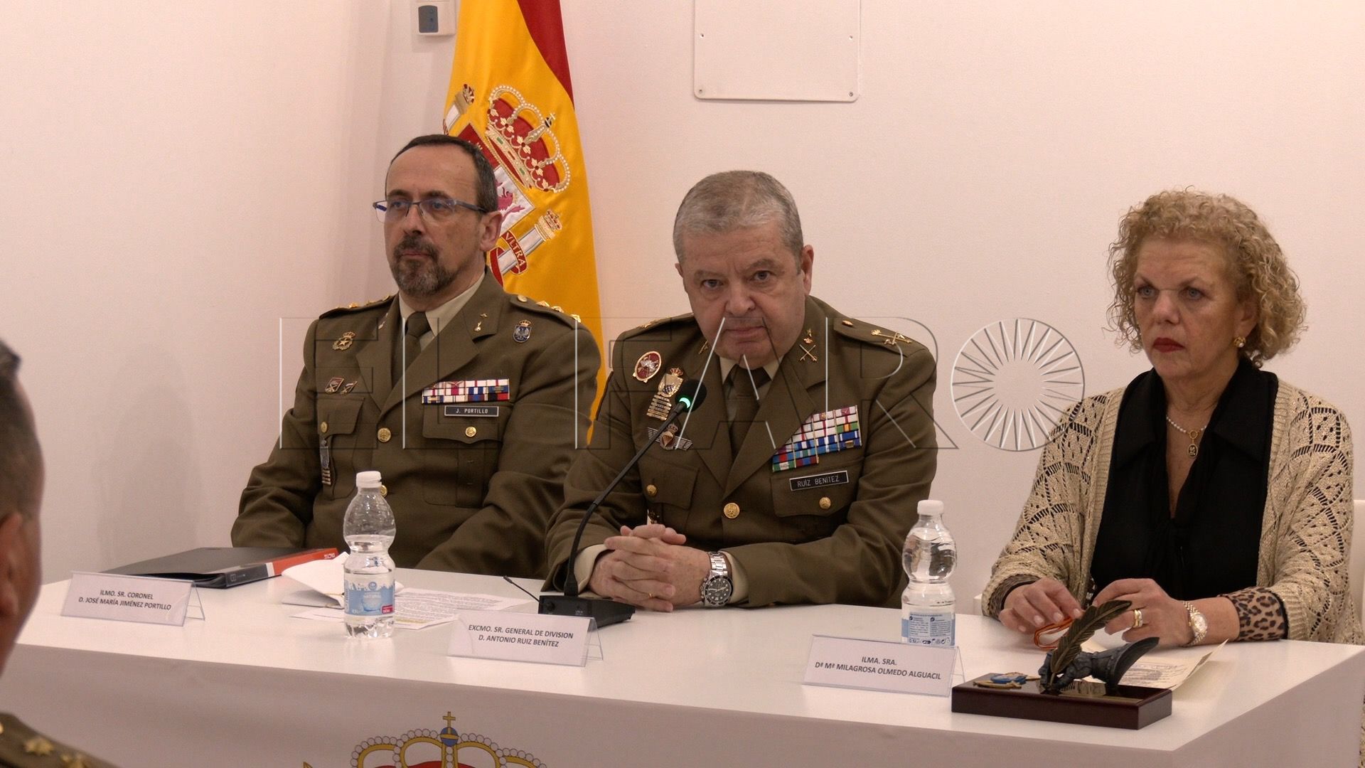 Ha estado presente la delegada del Gobierno en Ceuta, Cristina Pérez y han acompañado en la mesa a Olmedo, además del director del Instituto, el coronel José María Jiménez Portillo.