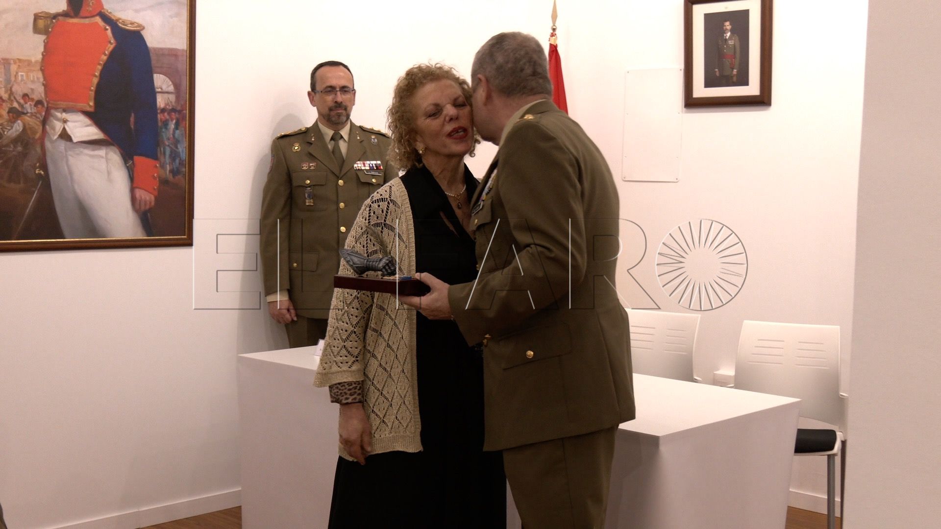 María Milagrosa Olmedo ha sido premiada con un obsequio muy representativo en el que se podía observar un puño militar que representa la fuerza, abrazando una pluma que contiene el significado de la cultura. También se le ha hecho entrega de un diploma de reconocimiento.