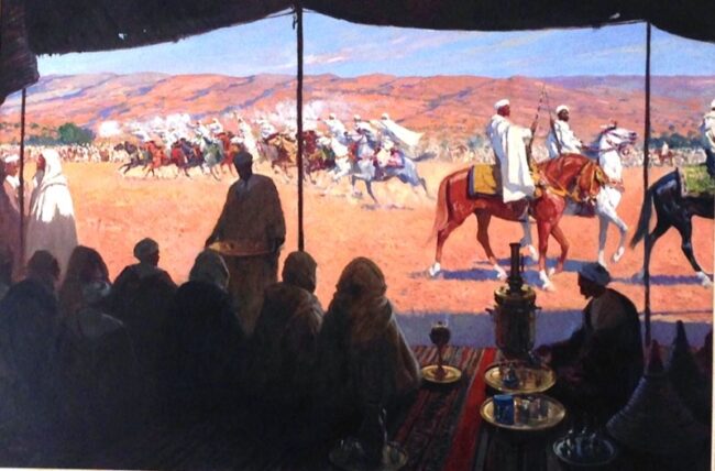 La corrida de la pólvora desde la tienda de un beduino por Mariano Bertuchi.