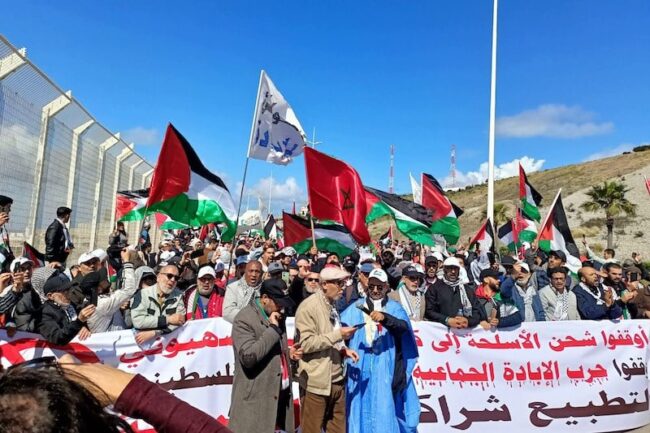 Estos exigían que “rechace el uso del territorio y los puertos marroquíes para cualquier actividad que apoye el suministro de armas a Israel para su uso en su guerra de genocidio contra los palestinos en Gaza”.