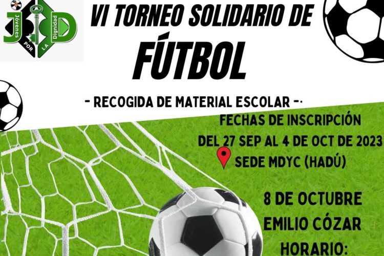 El Movimiento por la Dignidad y la Ciudadanía organizan un torneo de fútbol solidario, que tendrá lugar el próximo domingo 8 de octubre desde las 10:00 hasta las 21:30 horas en el campo de la Real Federación de Fútbol de Ceuta, Emilio Cózar.