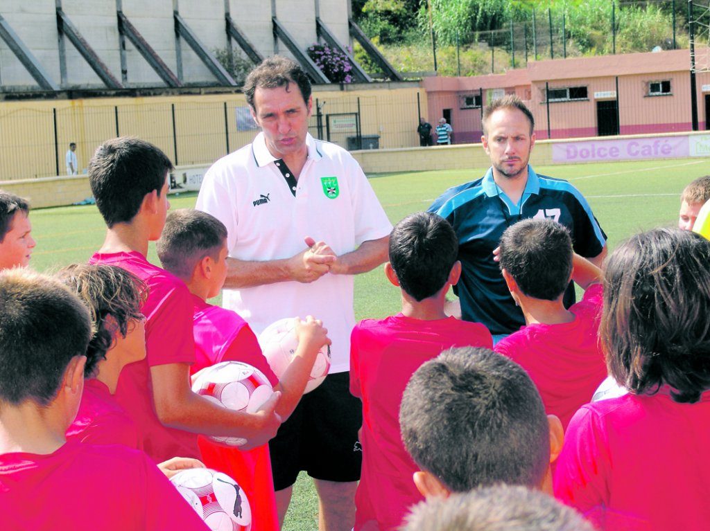 El ex jugador del Real Madrid, Deportivo de la Coruña y RCD Espanyol se vistió de corto para dirigir la sesión de entrenamiento en la segunda jornada del Campus de Verano 2010 de la FFC.