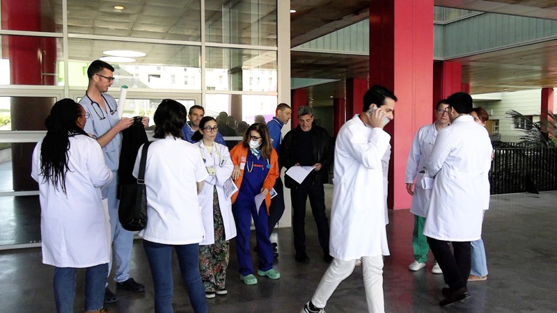 Alrededor de quince sanitarios se han personado en el hospital para hacer públicas sus demandas. “Estamos aquí por la sanidad pública y por la dignidad de los facultativos. Estamos aquí para que se nos escuche y se solucione una problemática que padecemos a diario. Esta merma el trabajo y la calidad asistencial”, ha trasladado José Piero Landra, cirujano del HUCE.