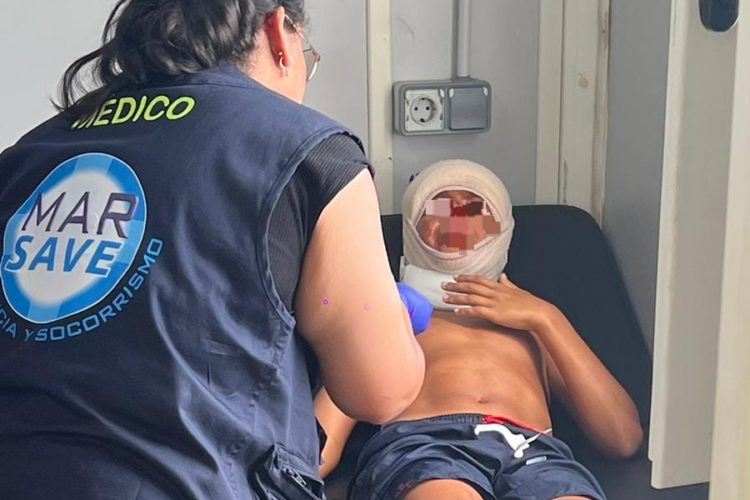 Al comprobar las lesiones sufridas, se procedió a su traslado urgente al clínico de Loma Colmenar después de ser estabilizado en el box de curas y en la propia ambulancia de soporte vital avanzado del equipo que presta los servicios de socorrismo en las playas de Ceuta.